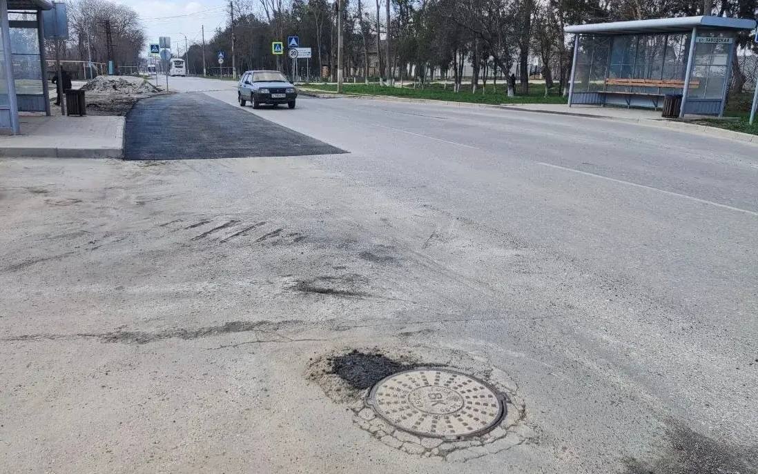 На улице Заводской проведены работы по ямочному ремонту дорожного покрытия, устранены повреждения вокруг люка, приведён в надлежащее состояние участок дороги вблизи остановки общественного транспорта.