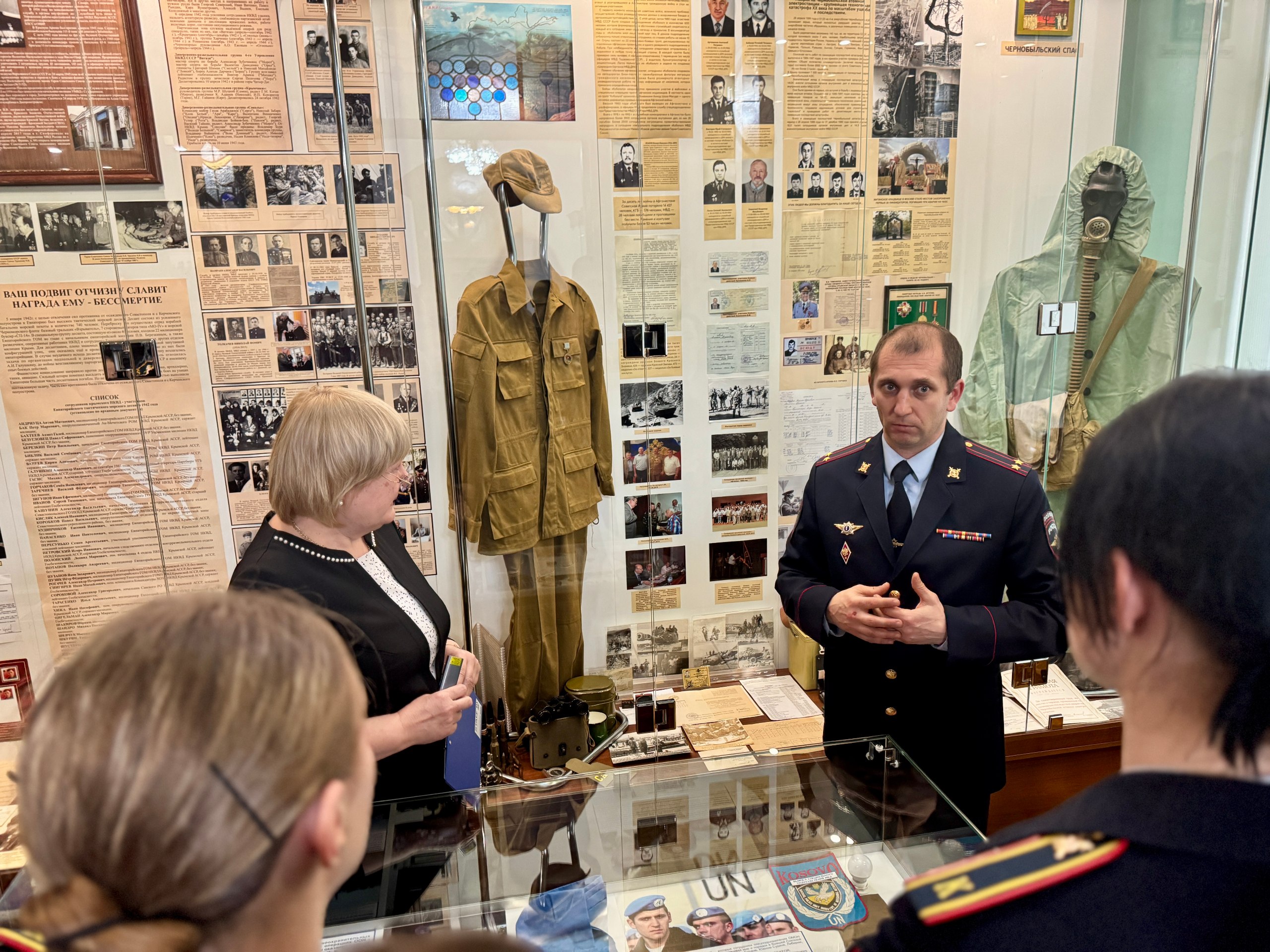 Экскурсию для обучающихся провела помощник министра внутренних дел по Республике Крым Инна Александровна Никитина. Она подробно рассказала о ключевых этапах становления ведомства на полуострове, о сотрудниках, чьи имена навсегда вписаны в историю крымских органов внутренних дел, а также о традициях, которые на протяжении десятилетий определяют моральный облик сотрудников полиции.