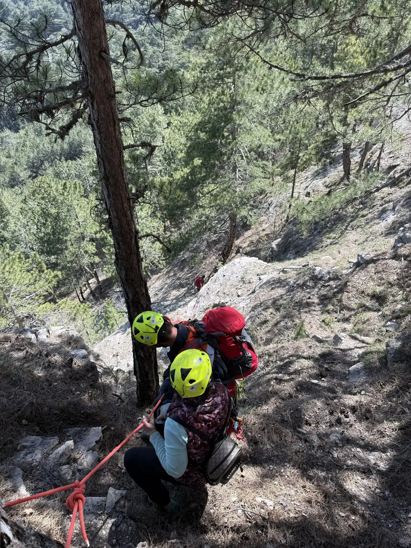 Туристку оперативно обнаружили, в медпомощи она не нуждалась. Спасатели проложили веревочные перила и эвакуировали туристку по крутому склону в безопасное место.