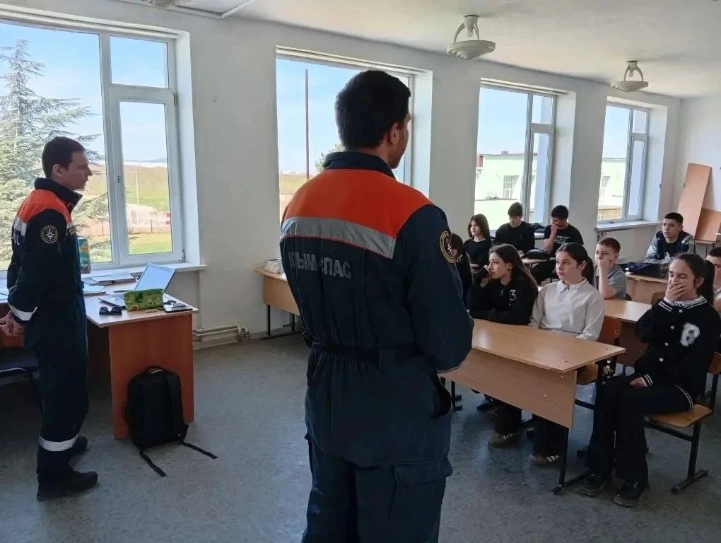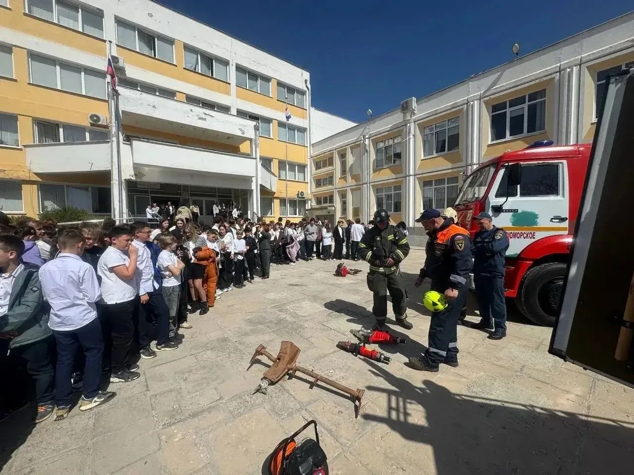 Сотрудники подведомственного учреждения МЧС Республики Крым ГКУ РК «КРЫМ-СПАС» проводят со школьниками уроки мужества, посвященные Дню Великой Победы.