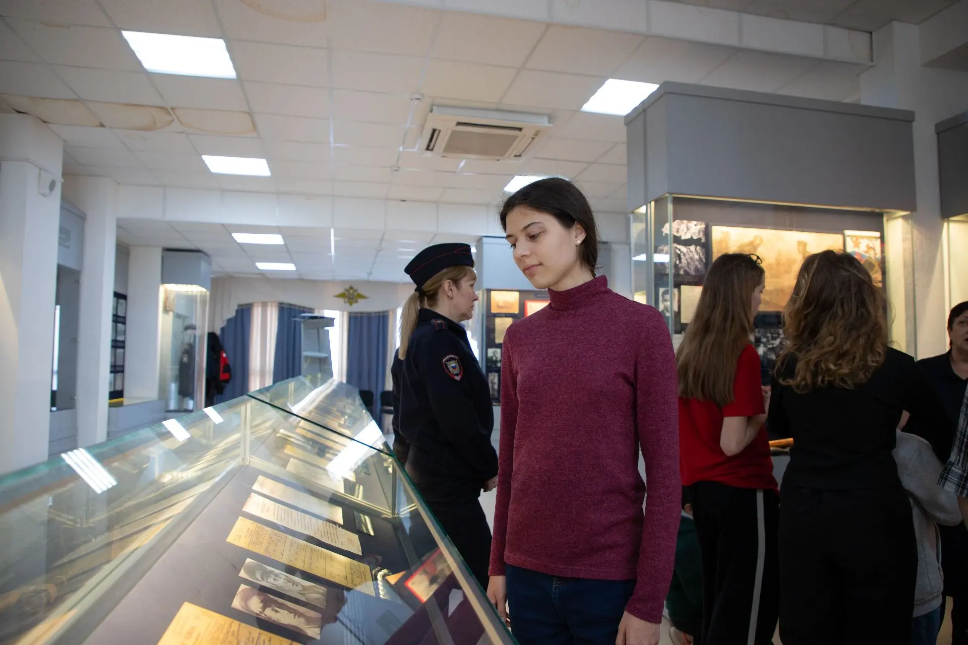 Внимание детей привлекли образцы форменного обмундирования, старые документы и фотографии, награды и личные вещи ветеранов. Особый интерес у подростков, как и у многих посетителей музея, вызвала коллекция огнестрельного и холодного оружия, изъятого у преступников в разные исторические периоды.