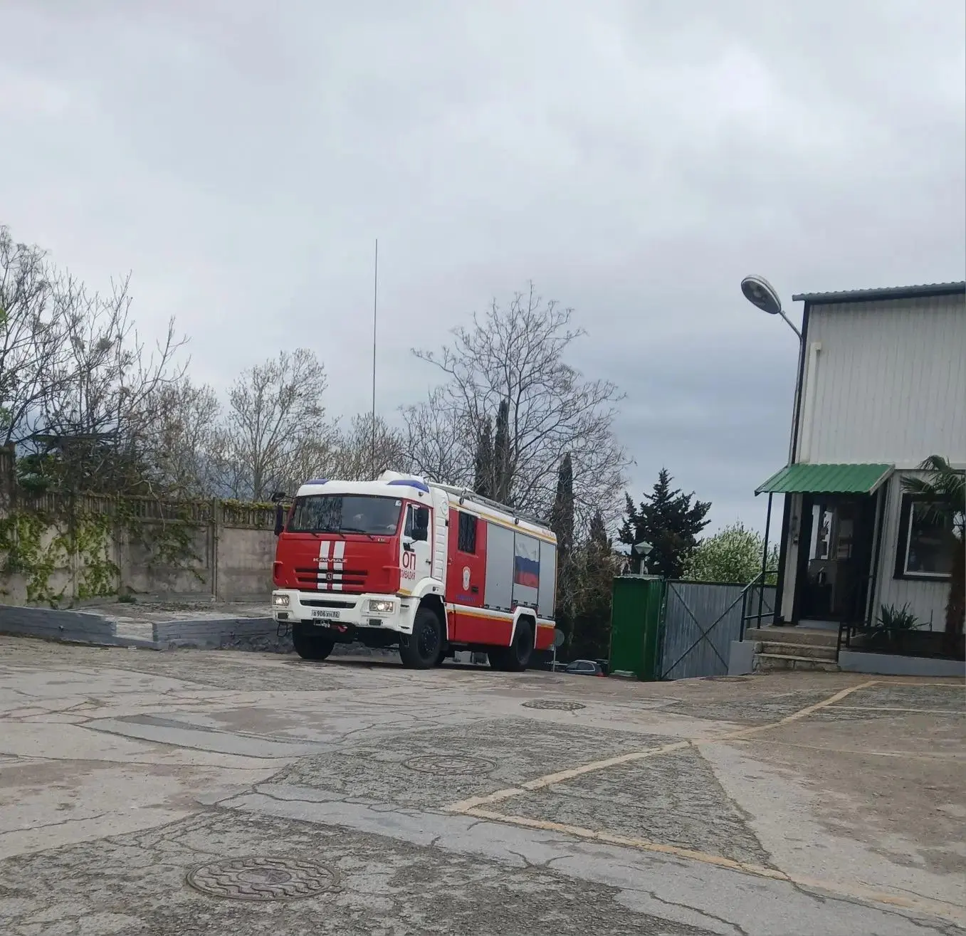 В Ливадии прошли пожарно-тактические занятия. По легенде, на продовольственном складе производственной базы "Могаби" ФГБУ "Комплекс "Крым" видно сильное задымление.