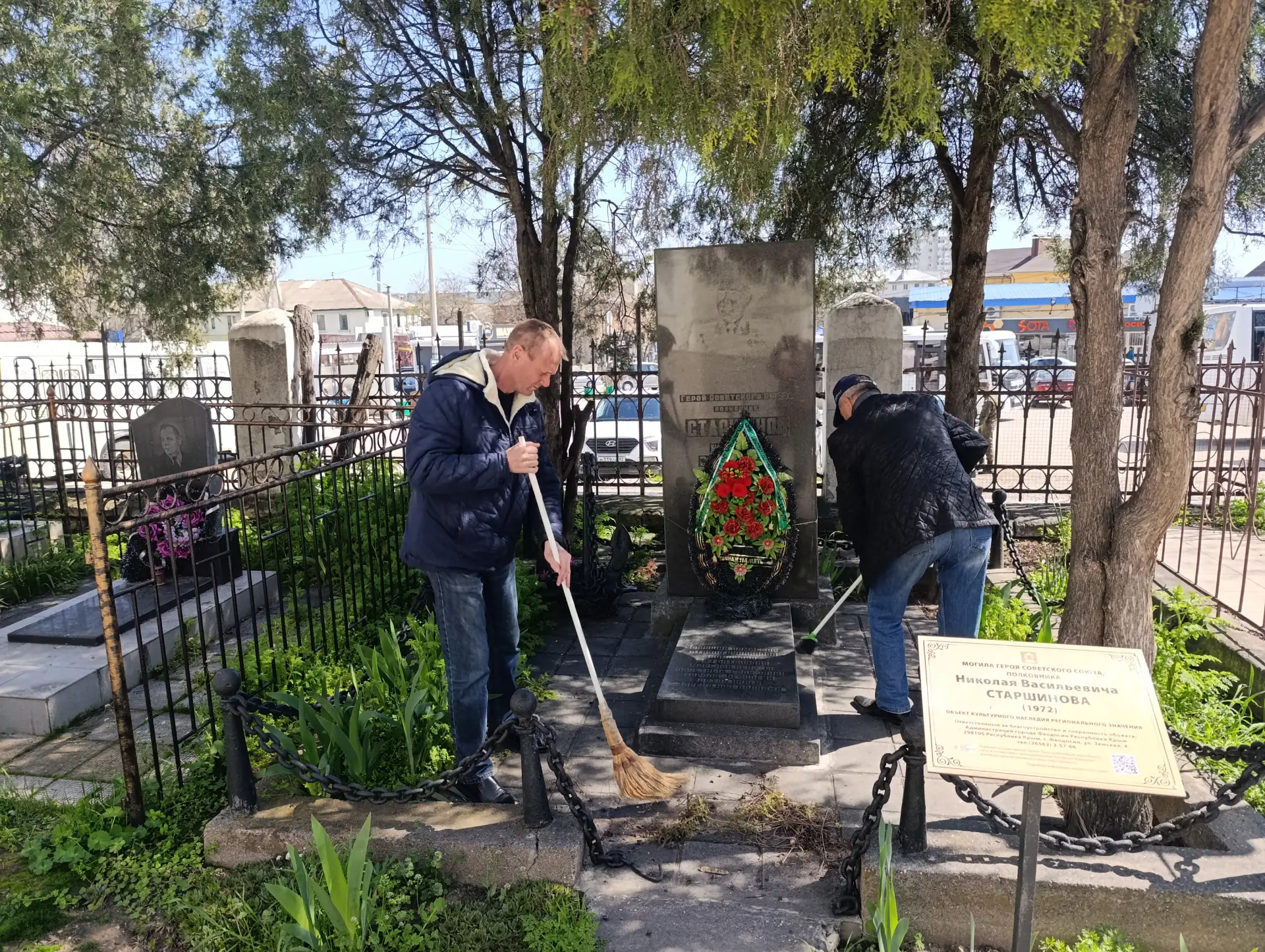 Феодосийским отделением проведены мероприятия по уборке объекта культурного наследия регионального значения — мемориального места захоронения Героя Советского Союза полковника Николая Васильевича Старшинова, именем которого названа одна из улиц города Феодосии.