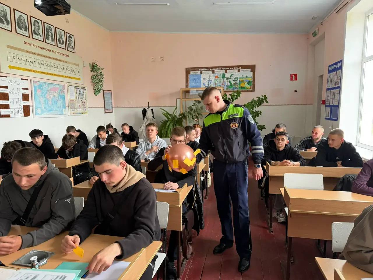 Сотрудники Госавтоинспекции ОМВД России по Красногвардейскому району совместно с сотрудником 27-й Пожарно-спасательной части Красногвардейского района организовали для учащихся ГБПУ РК «Агропромышленный техникум имени Н.И. Скворцова» психологический краш-курс по безопасности дорожного движения.