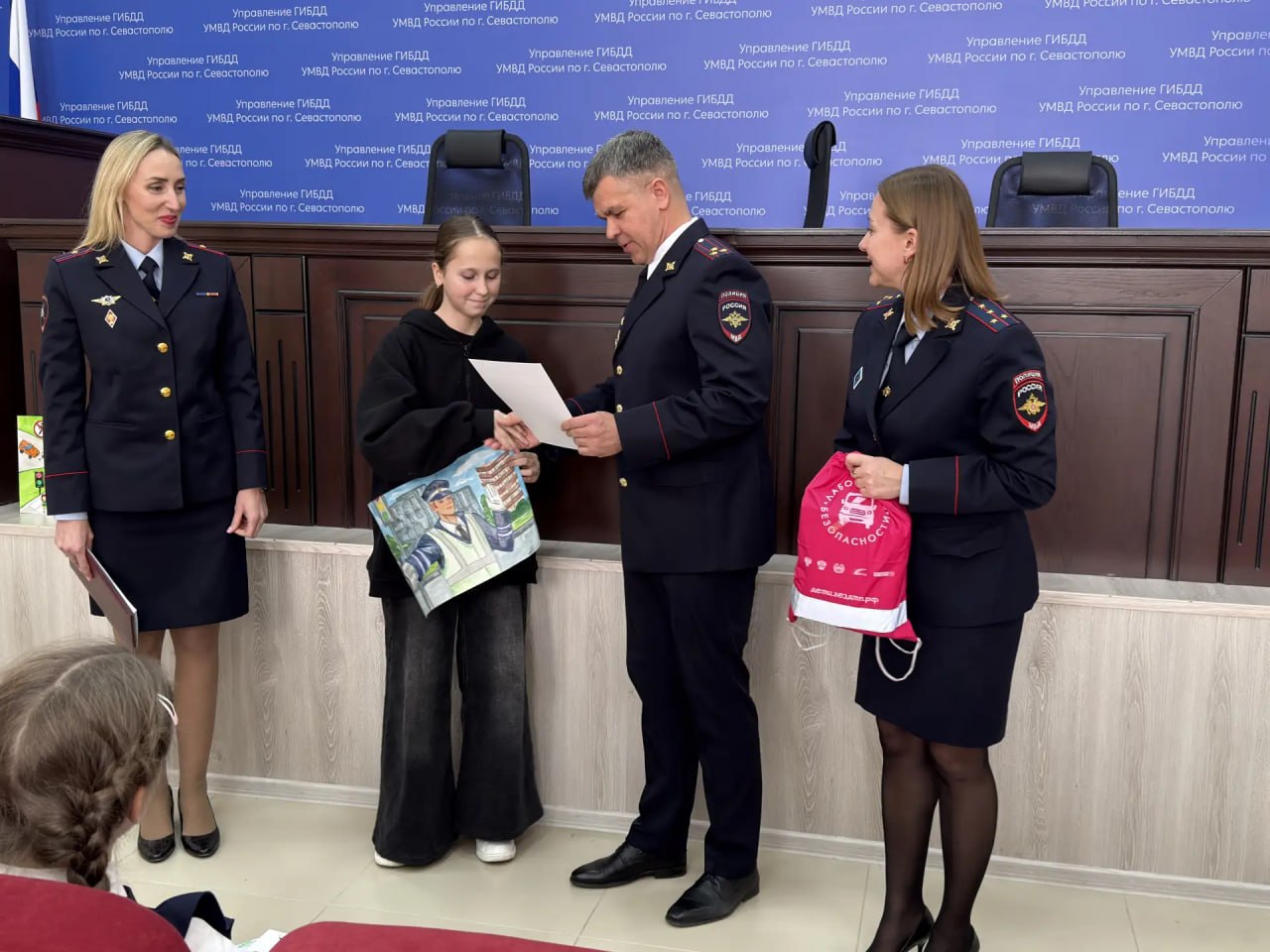 Начальник Управления Госавтоинспекции УМВД России по г.Севастополю Юрий Бондарчук наградил победителей конкурса рисунков «Служба в Госавтоинспекции глазами детей»