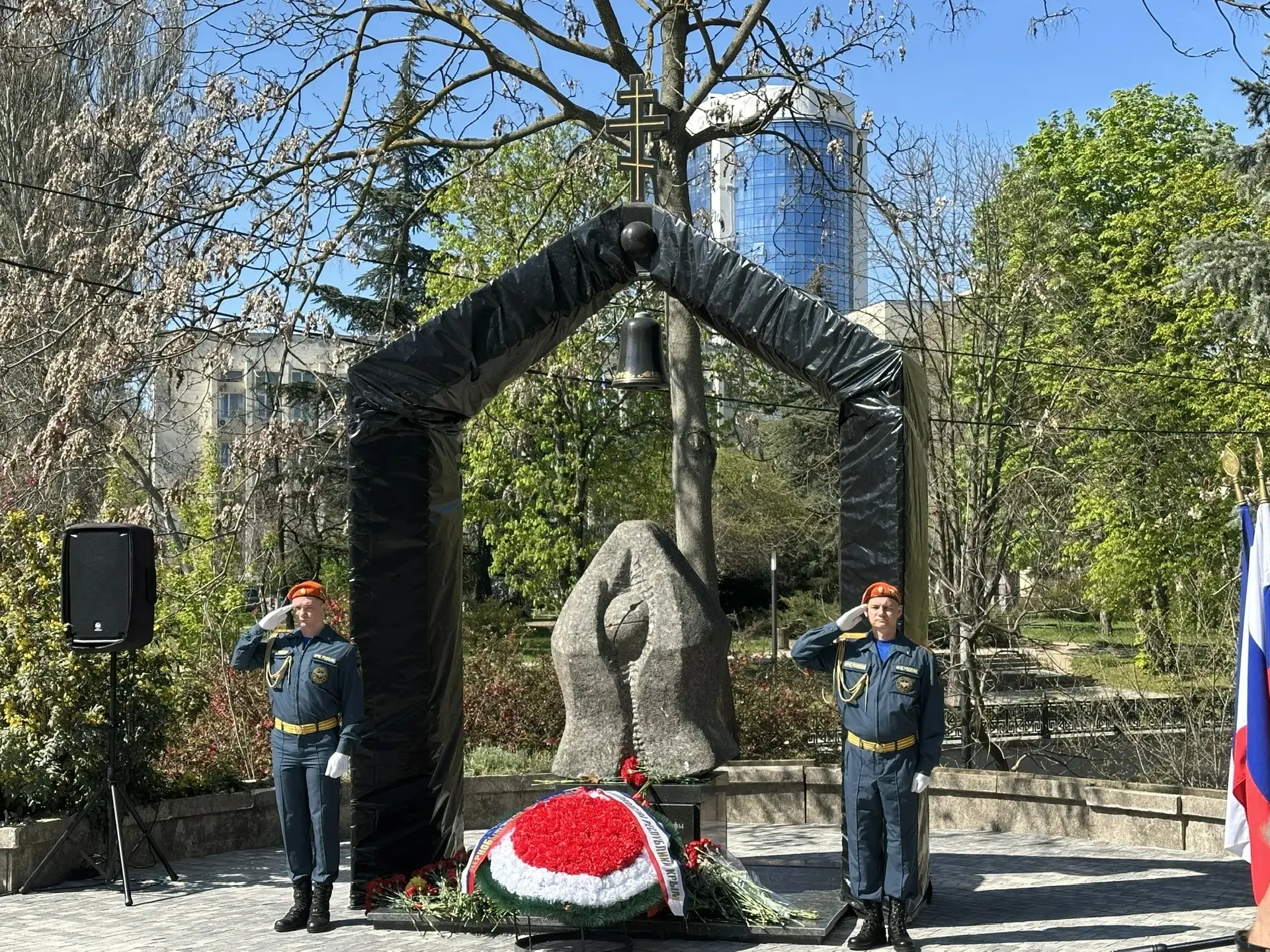 В честь 40 годовщины со дня катастрофы на Чернобыльской АЭС в Симферополе возложили цветы к памятнику «Жертвам Чернобыльской катастрофы». В церемонии возложения приняли участие первые лица республики, представители различных министерств и ведомств, руководители общественных организаций, волонтеры. От Главного управления МЧС России по Республике Крым в мероприятии принял участие заместитель начальника Главка – Дмитрий Коваленко.