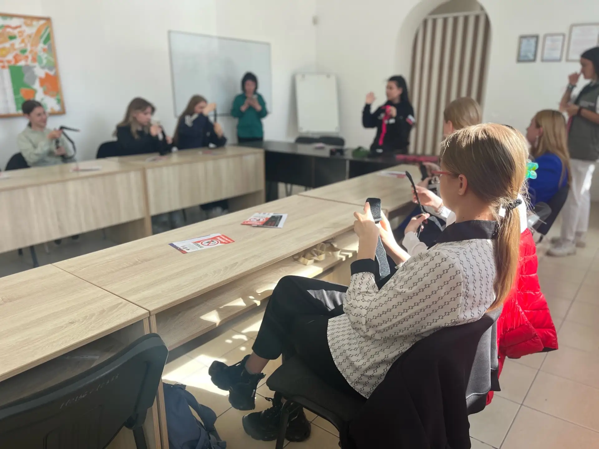 Вторя часть – практический мастер-класс, который провел инструктор-доброволец по программе «Стоп Кровь». За два часа школьники освоили жизненно важные навыки: наложение жгутов при артериальных кровотечениях, правильную перевязку ран, алгоритм безопасного подхода к пострадавшему, а также порядок действий при атаке БПЛА и правила вызова экстренных служб.