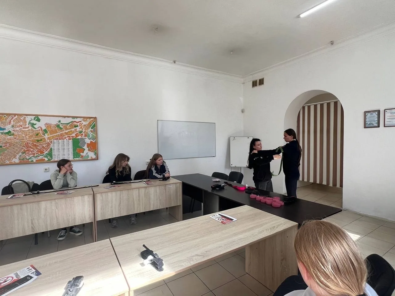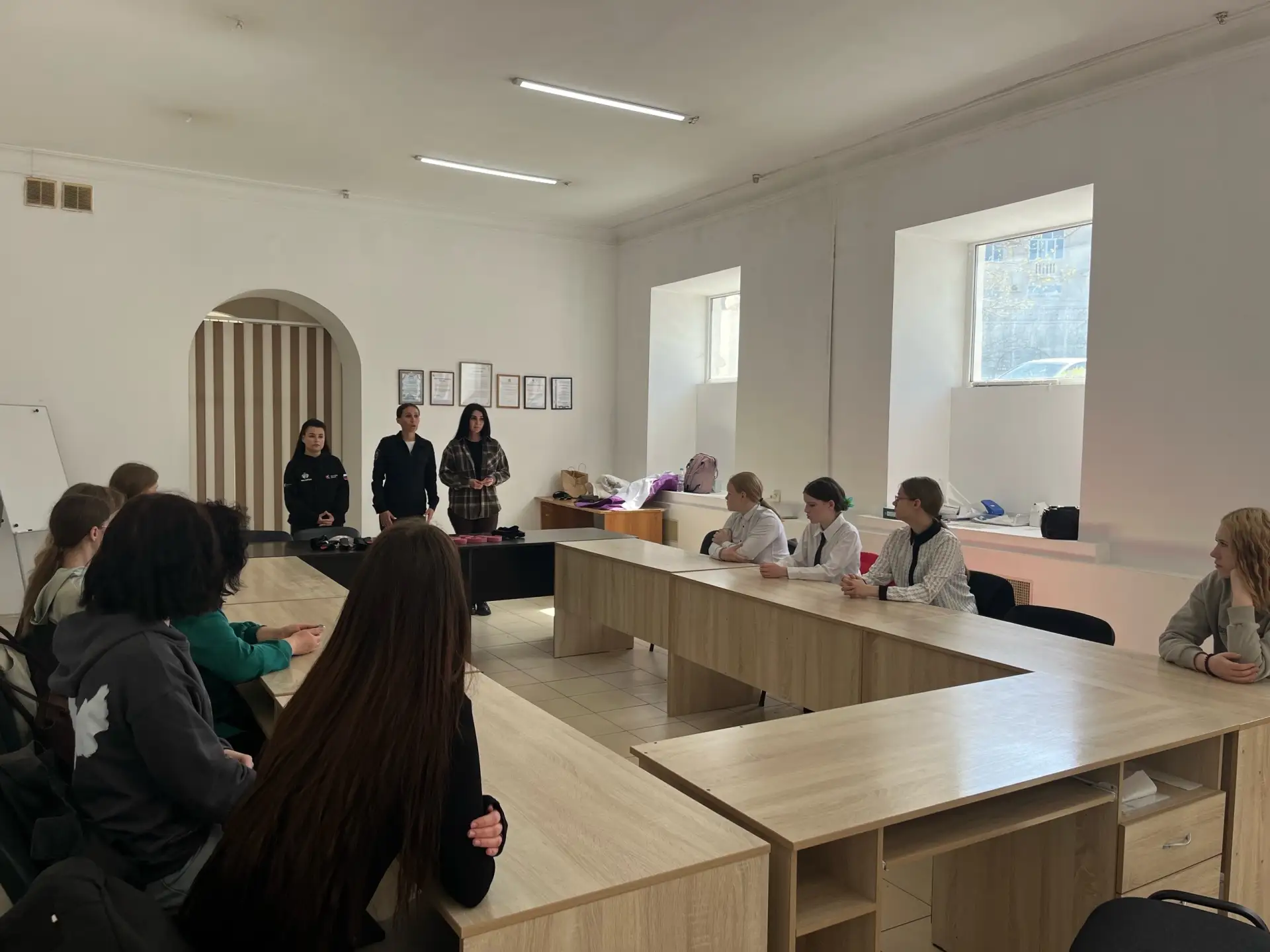 Занятие состояло из двух блоков. В первой части старший оперуполномоченный УНК УМВД майор полиции Екатерина Первых и старший оперуполномоченный ЦПЭ УМВД майор полиции Татьяна Хараман рассказали о вреде наркотиков и о том, какие опасности ждут подростков в сети Интернет, а затем раздали участникам тематические памятки и листовки.