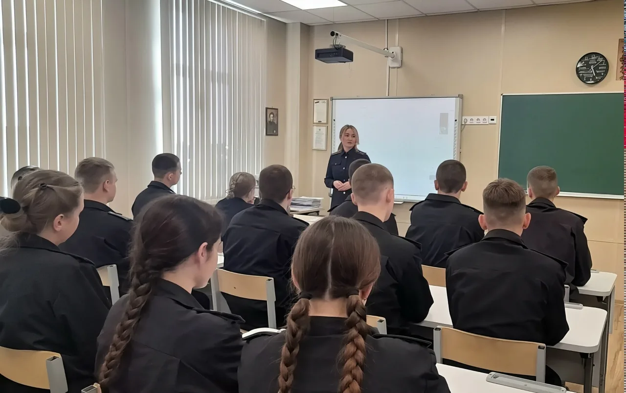 Для обучающихся кадетского корпуса сотрудник ведомства провела профориентационную беседу, а также лекцию о рисках деструктивного поведения и недопущении вовлечения несовершеннолетних в противоправную деятельность. В рамках занятий осуществлён показ тематических видеоматериалов.
