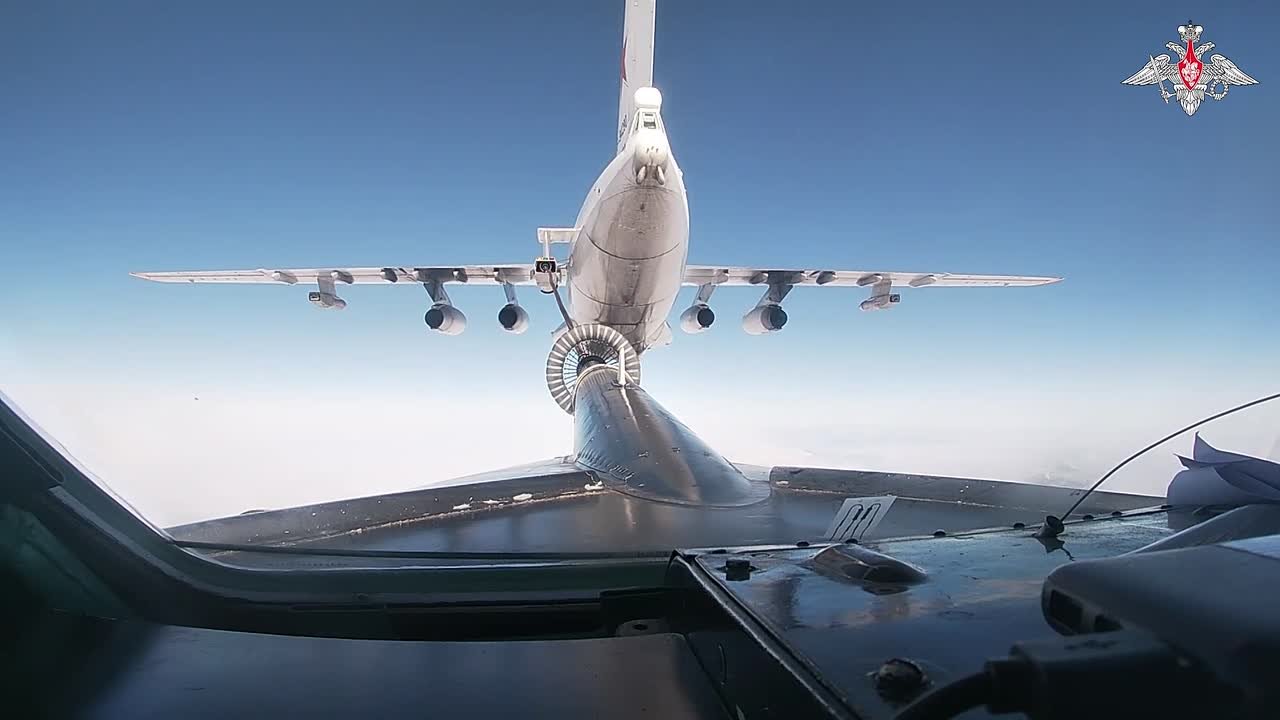 В ходе полета экипажи стратегических ракетоносцев Ту-95мс отработали дозаправку топливом в воздухе.