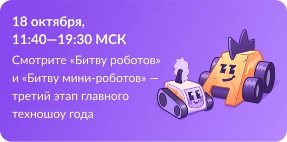В третьем отборочном этапе чемпионата сразятся 28 команд из России, Туниса и Индии: 16 команд в рамках дисциплины «Битва роботов» в весовой категории до 110 кг и 12 команд в рамках дисциплины «Битва мини-роботов» в весовой категории до 1,5...