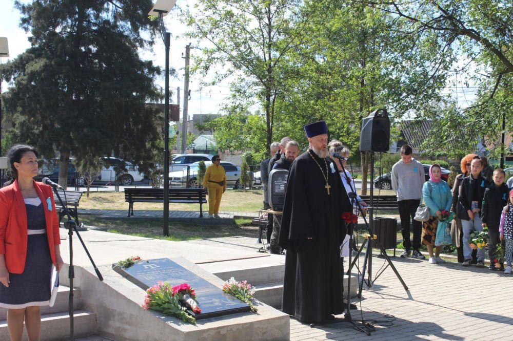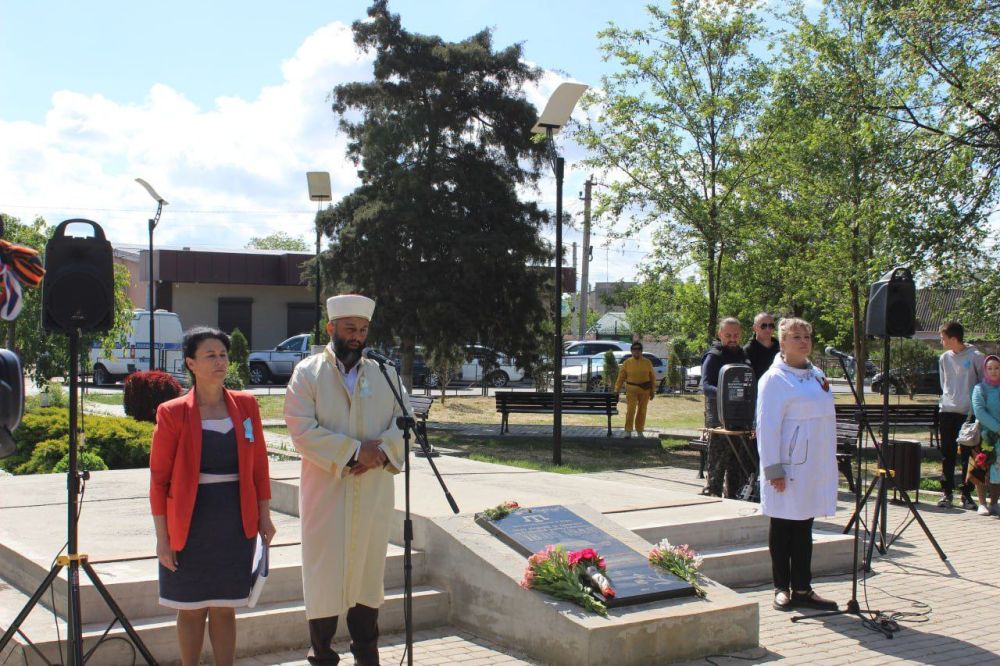 В День памяти жертв депортации народов Крыма, в рамках траурного мероприятия, почтили минутой молчания память о тех, кто не дожил до сегодняшних дней, а также возложили корзины и цветы к памятному знаку жертвам депортации.