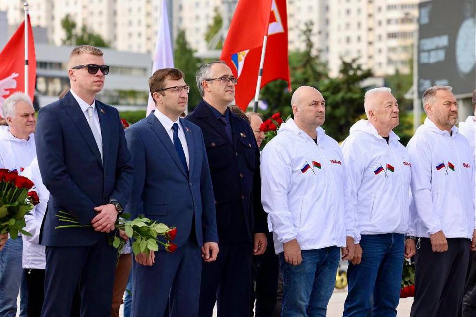 Сегодняшний деньмы начали с возложения цветов к стеле «Минск-город герой» вместесруководителями Мосгордумы Алексеем Шапошниковым, Законодательного Собрания Санкт-Петербурга Александром Бельским, Волгоградской областной думы Александром Блошкиным, представителями депутатского корпуса Смоленской областной думы, депутатами Законодательного Собрания Севастополя, участниками автопробега.