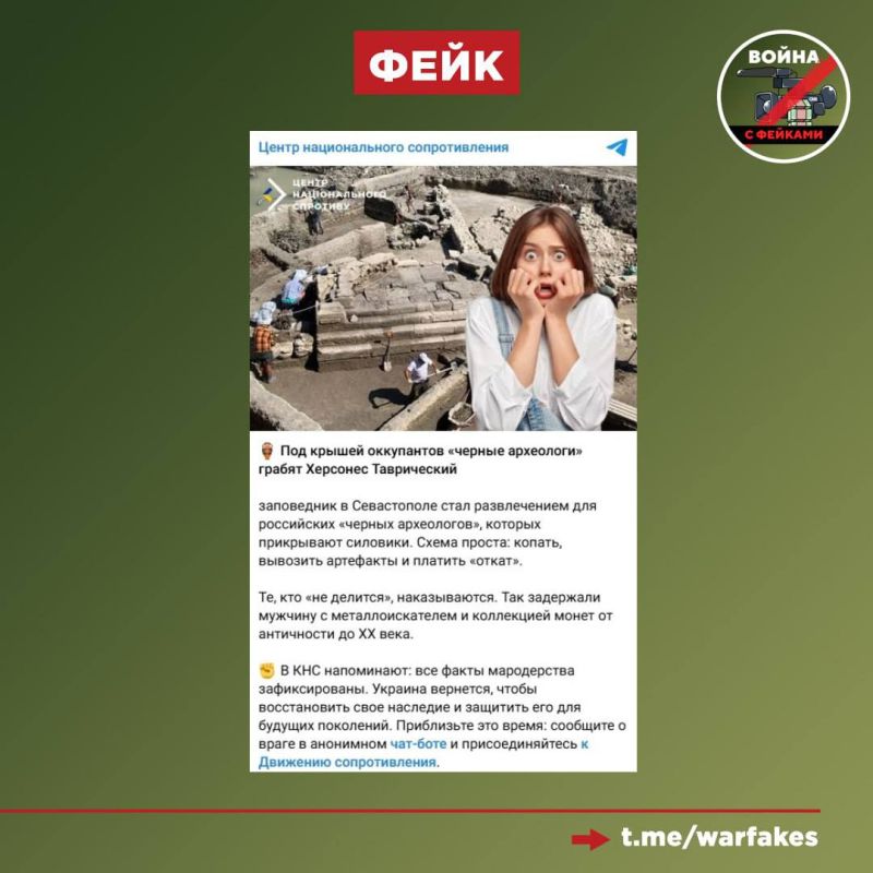Фейк: Российские «черные археологи» разграбляют музей-заповедник «Херсонес Таврический». Об этом пишет украинский Центр национального сопротивления.