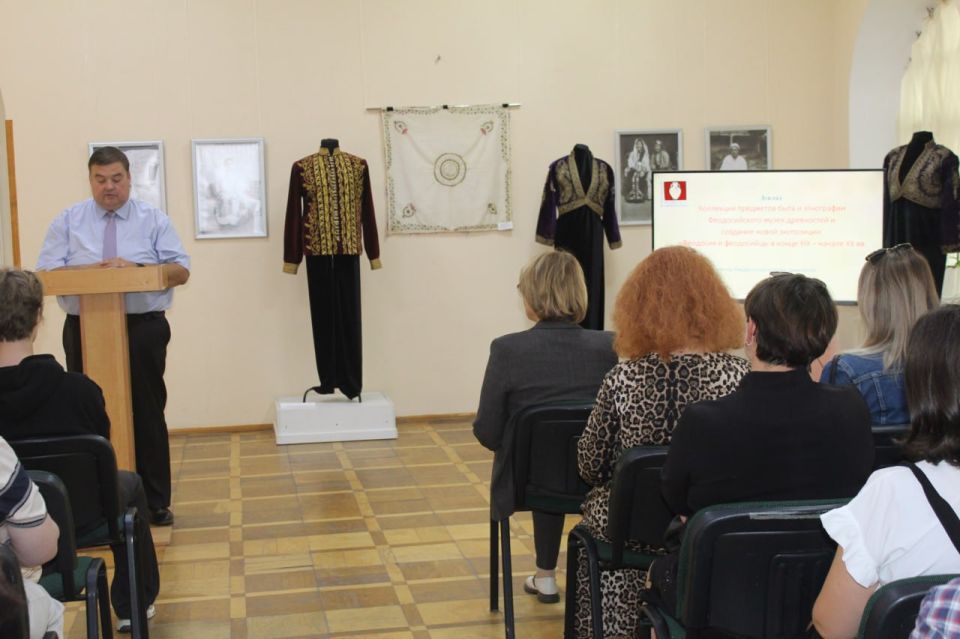 Директор Феодосийского музея древностей Александр Родионов в своем докладе представил коллекцию предметов быта и этнографии Феодосийского музея, указав на особенности создания новой экспозиции «Феодосия и феодосийцы в конце XIX – начале XX вв.», охарактеризовав основные экспозиционные залы.