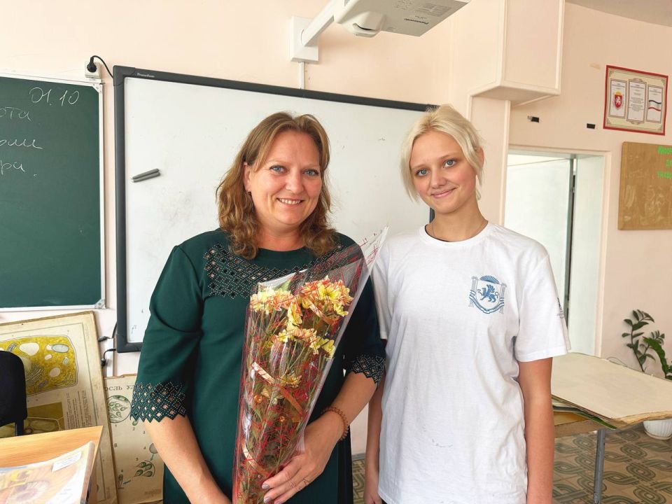 Молодежный совет Черноморского района дарит цветы и благодарность учителям