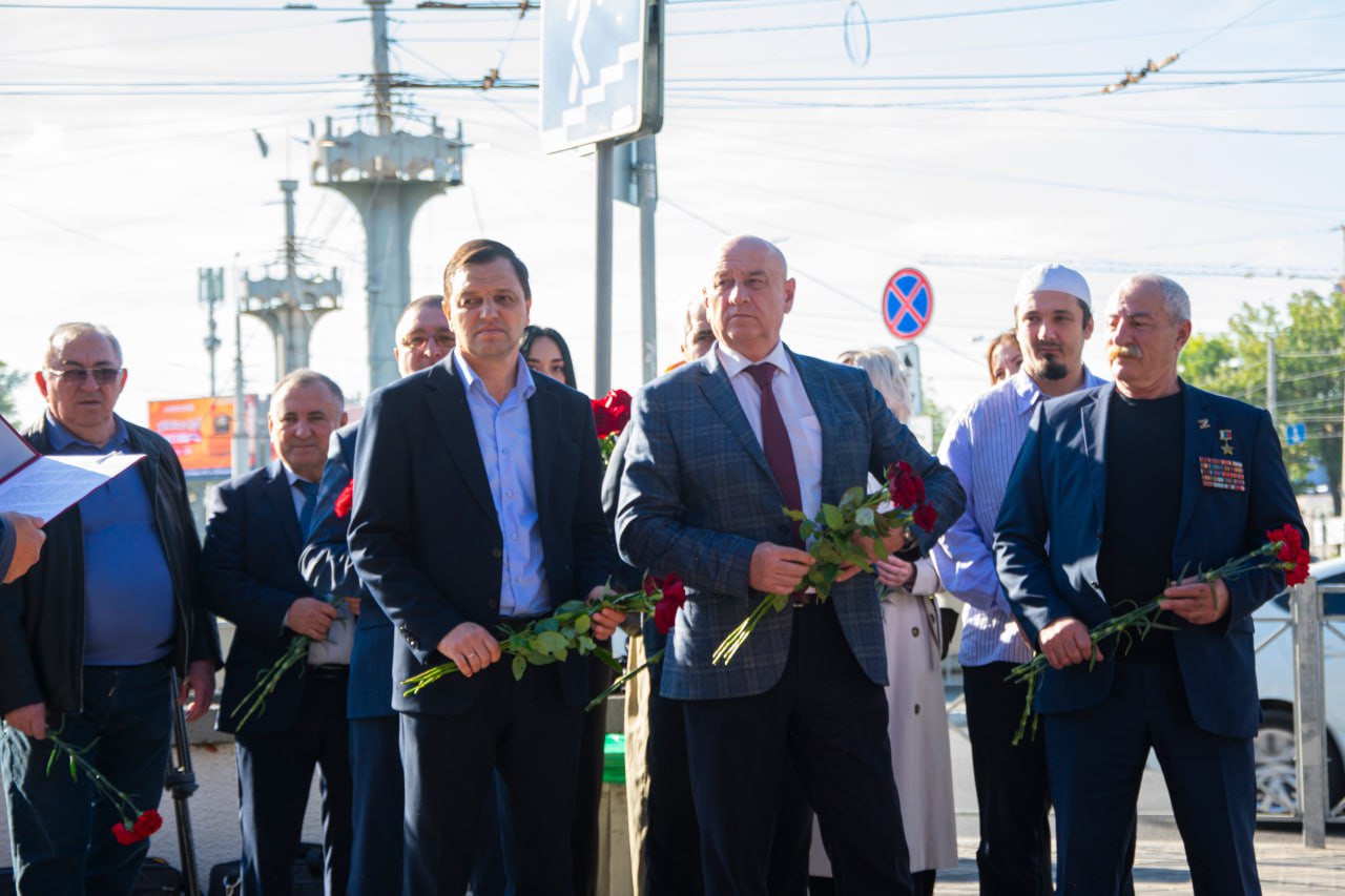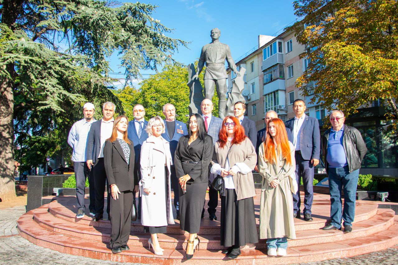 К памятнику выдающегося летчика были возложены цветы руководством Государственного комитета по делам межнациональных отношений Республики Крым, делегацией Республики Дагестан, представителями администрации города Симферополя, общественными организациями, духовенством и жителями столицы Крыма.