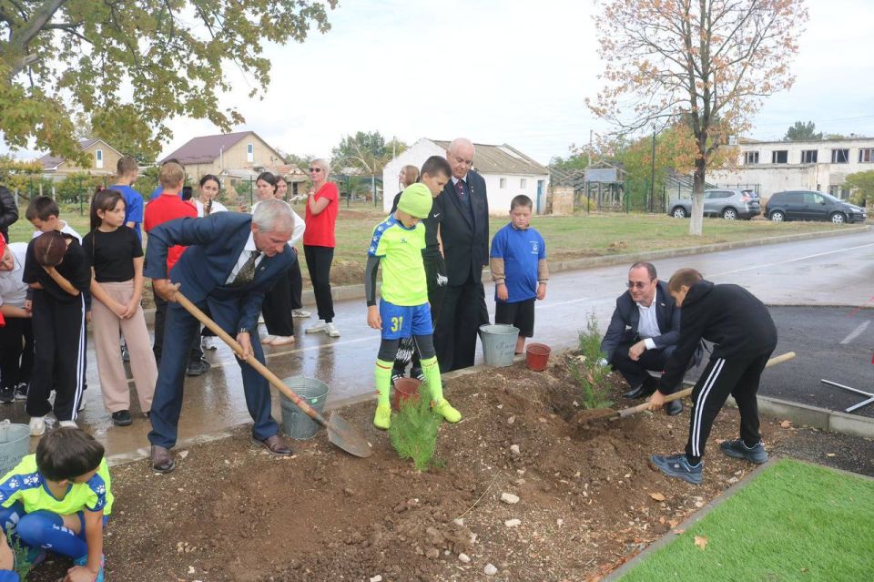 Кроме того, парламентарии вместе со школьниками высадили зелёные насаждения возле спортивной площадки.