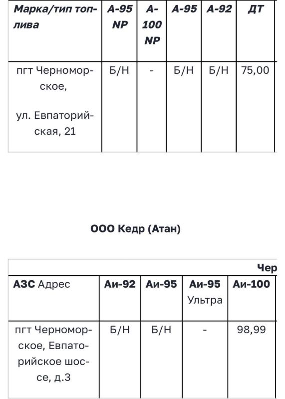 Актуальная информация по наличию топлива на АЗС в Черноморском районе