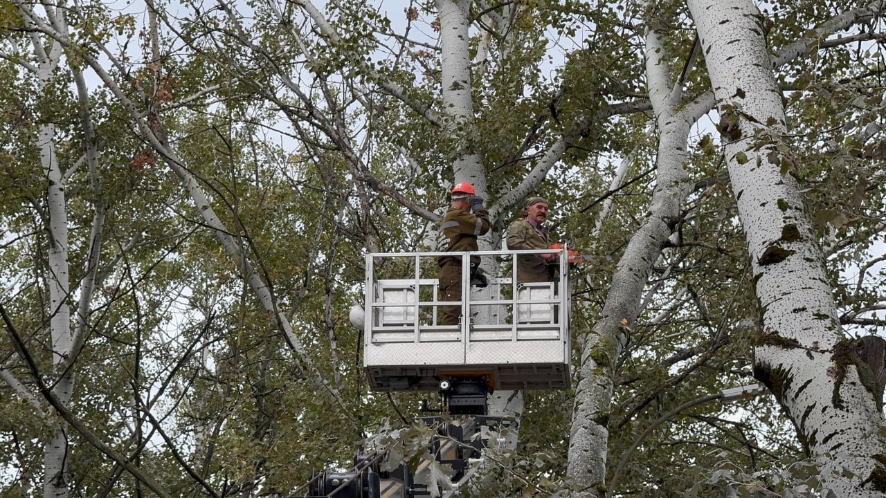 Предварительно участок оградили сигнальной лентой для безопасности пешеходов и автомобилистов. Срезанные ветви оперативно вывезли.