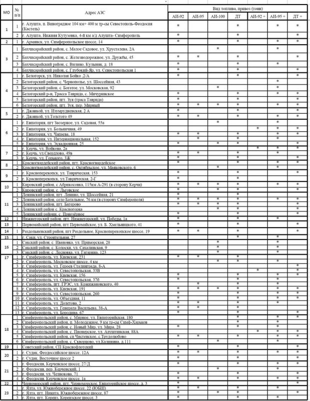 По состоянию на 8.00 часов 7 октября 2025 года в Нижнегорском районе реализуется топливо по всем формам оплаты на автозаправочных станциях по адресам: