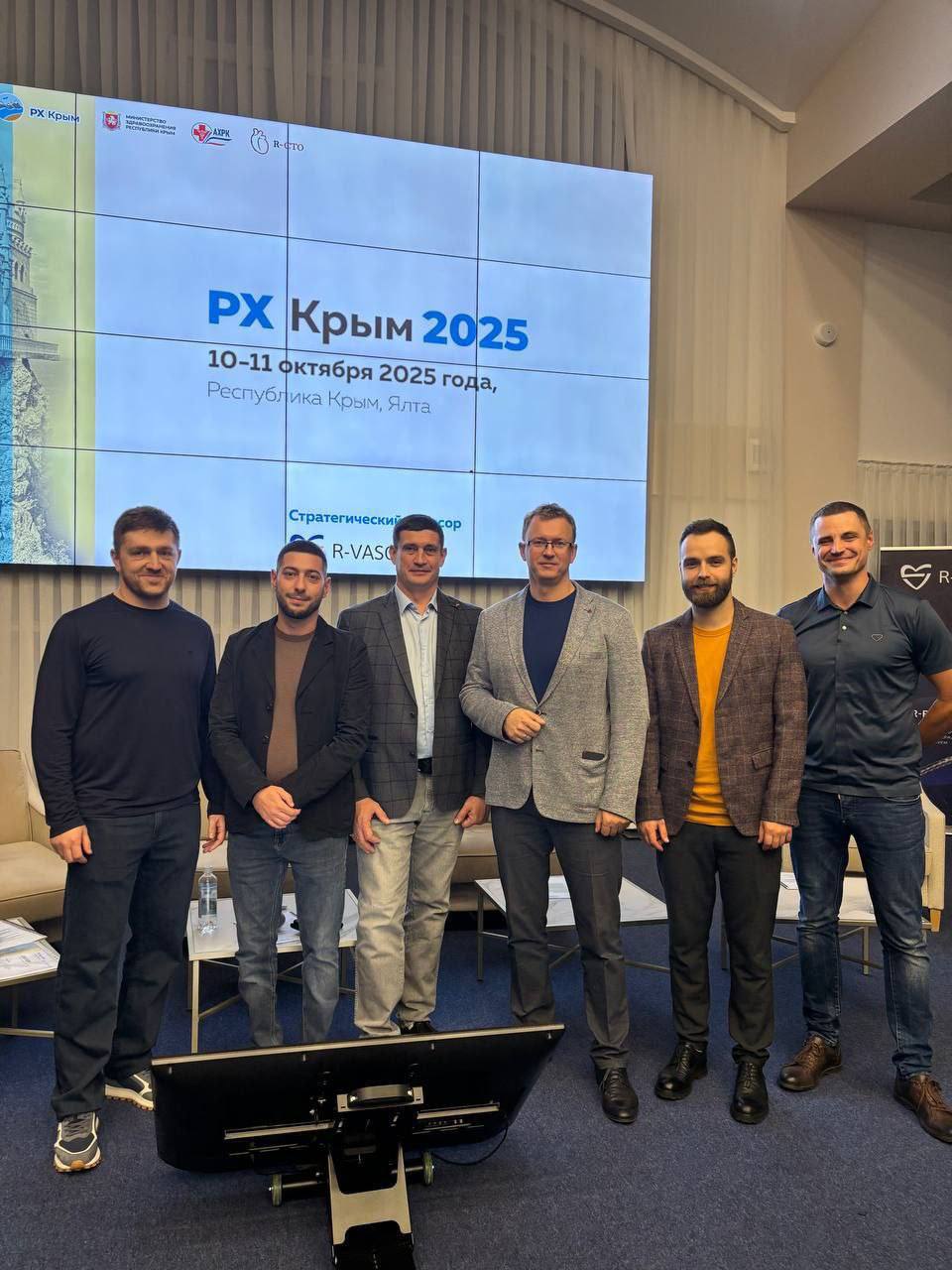 Кардиохирург Илья Данченко (на фото второй справа) представил свою научную работу на конференции «РХ Крым 2025».