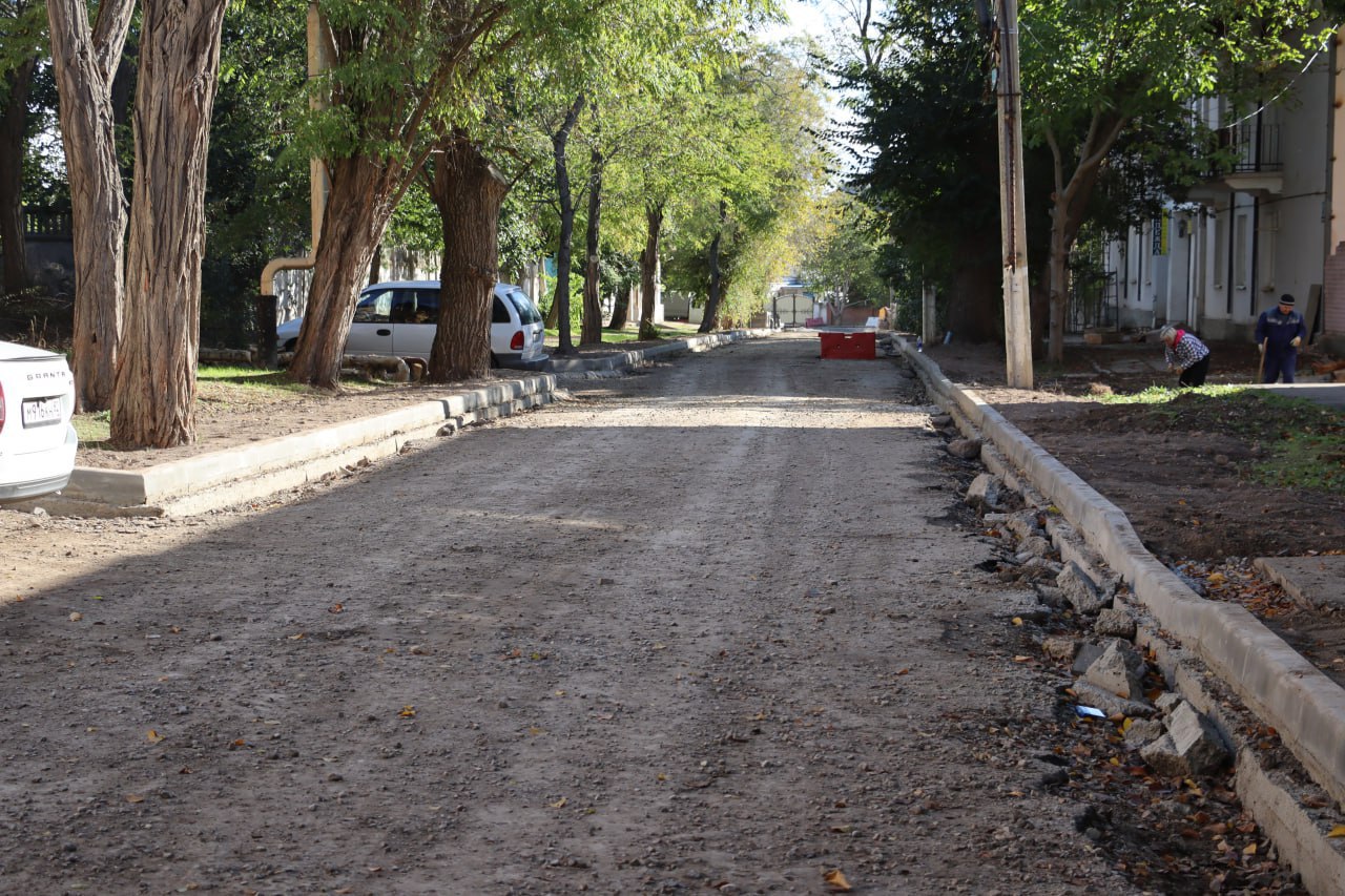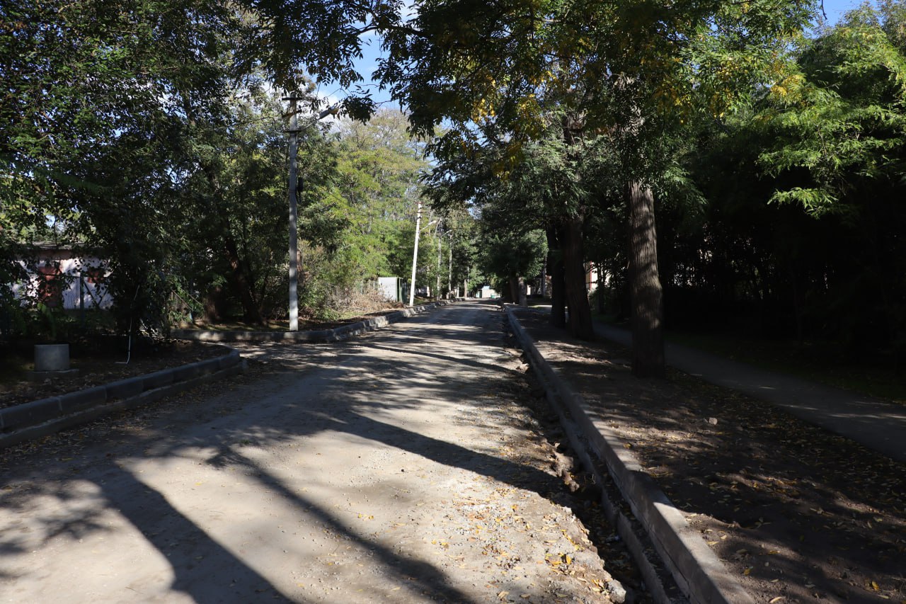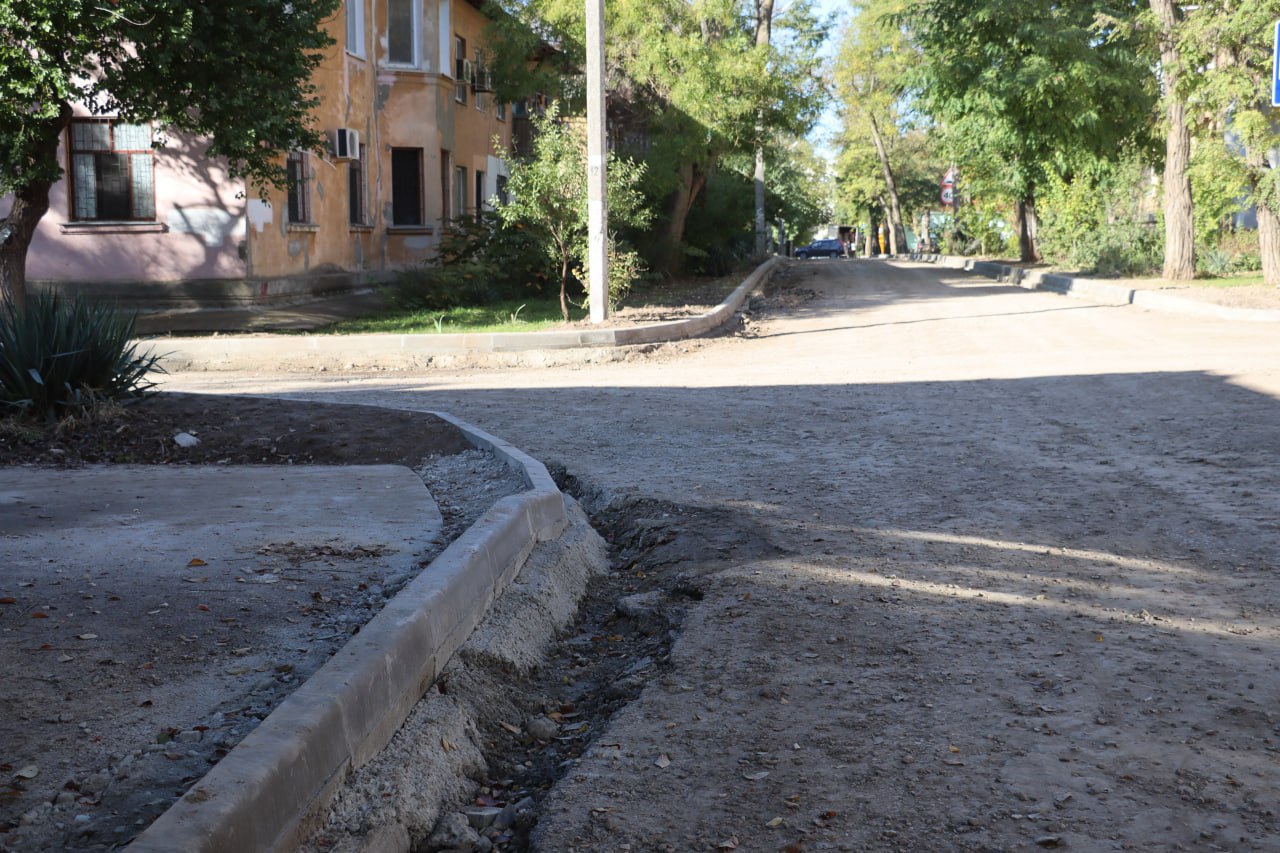 Подготовка к укладке нового полотна идёт и на соседних улицах – Назаренко и Голощапова. Предварительно здесь сняли старое покрытие, заменили бордюрный камень. Работы идут по графику.