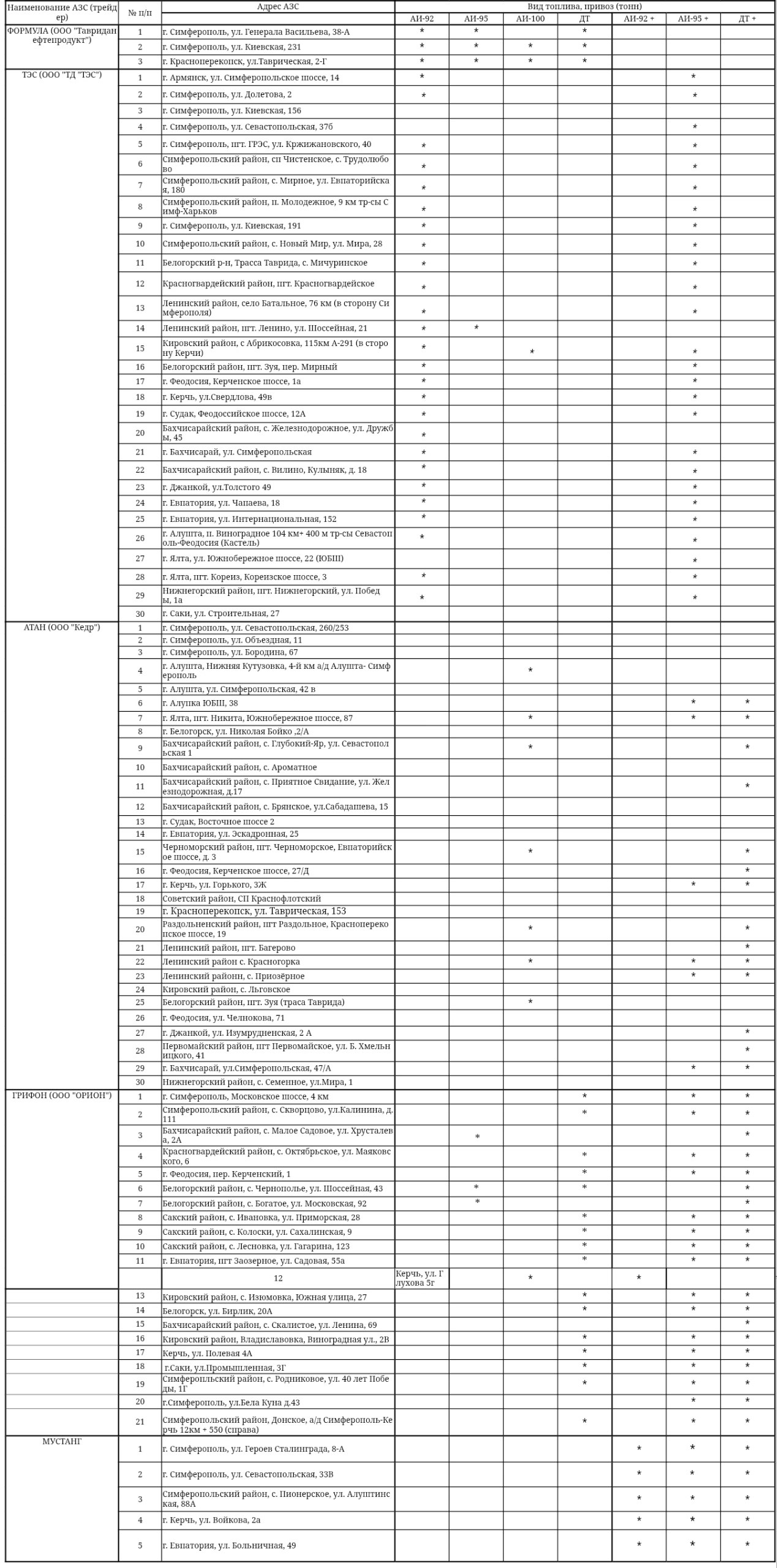 Перечень адресов АЗС обновляется ежедневно и доступен на официальных ресурсах: портале Правительства РК и Министерства топлива и энергетики РК.