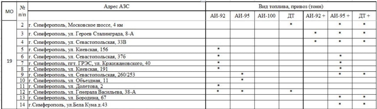 Актуальный перечень адресов АЗС в городе Симферополе, где имеется топливо в свободной продаже (*Данные актуальны на 19.10.2025 года 08:00)