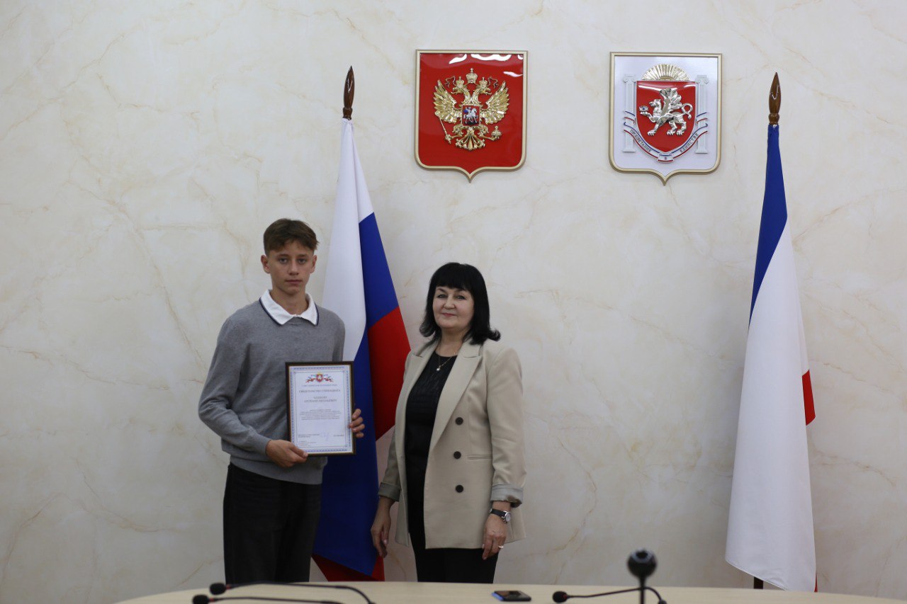 В Министерстве образования, науки и молодежи Республики Крым состоялось вручение специальных свидетельств стипендиатам. Церемония была организована для учащихся образовательных учреждений дополнительного образования, представляющих различные города и районы региона.