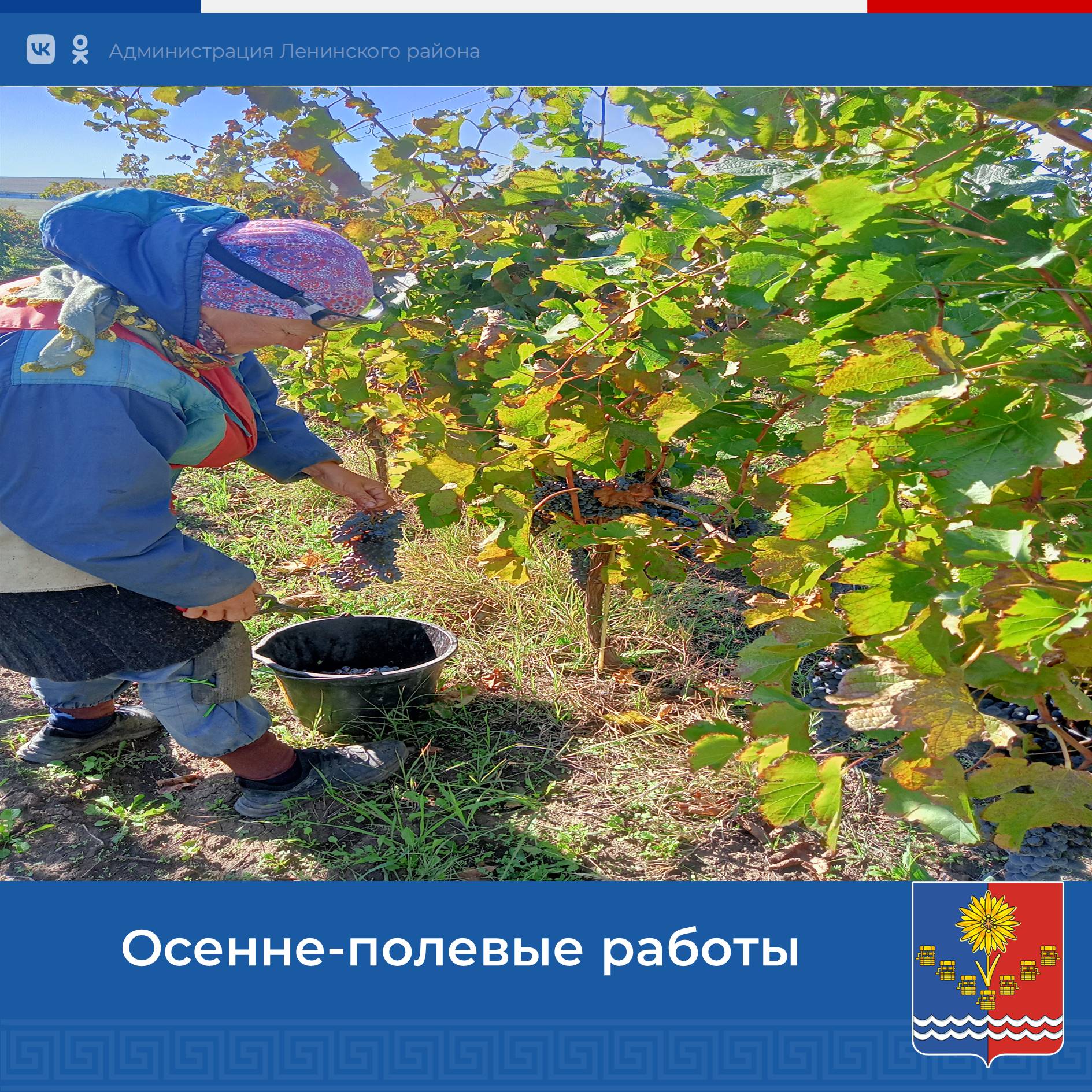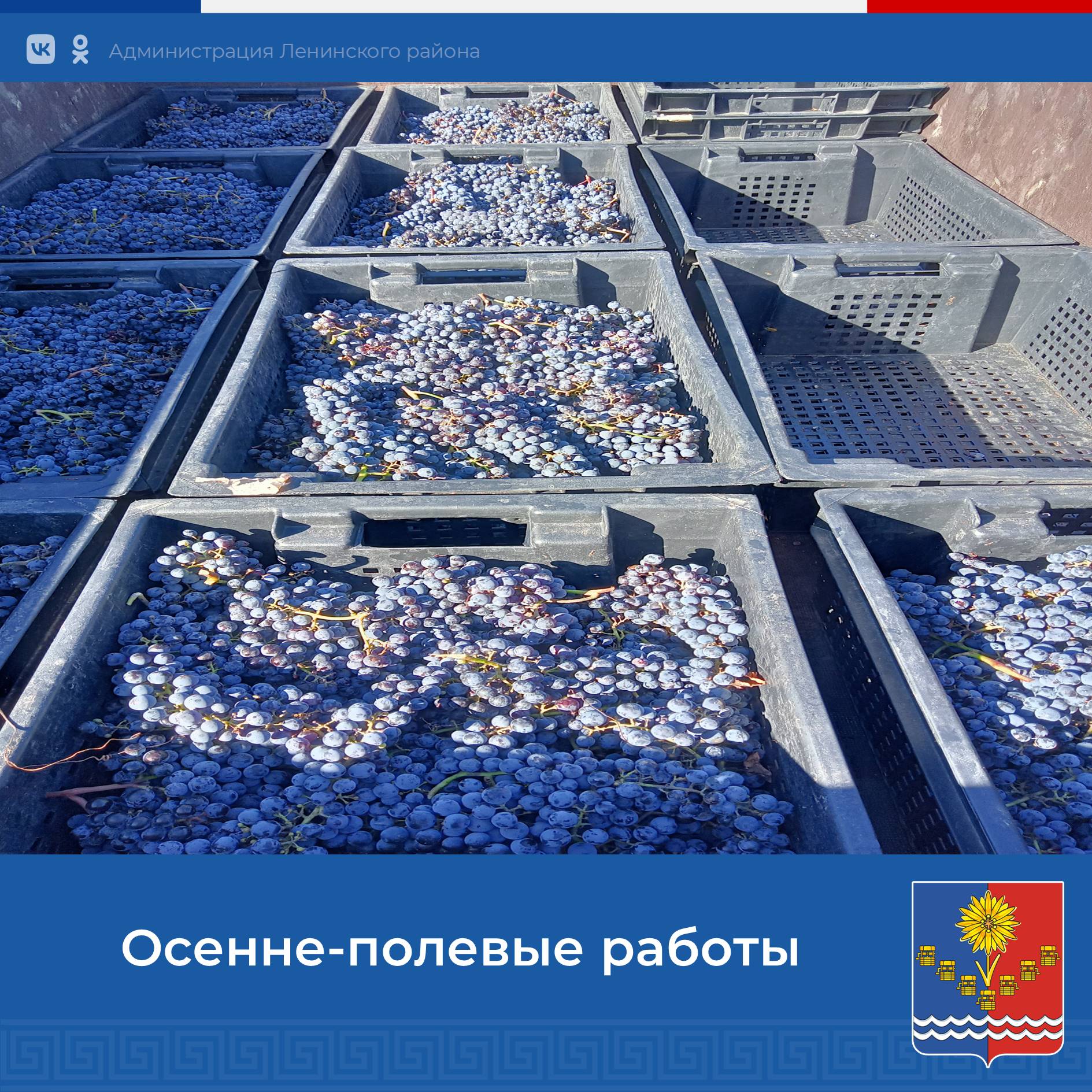 А также продолжается сбор винограда. Уборочная площадь составила 83,1 га. На текущий момент собрано 1035,7 тонны. В том числе сбор столовых сортов винограда составил 5,6 тонн с 0,69 га. Технические сорта убраны с площади 82,42 га и собрано 1030,1 тонн.