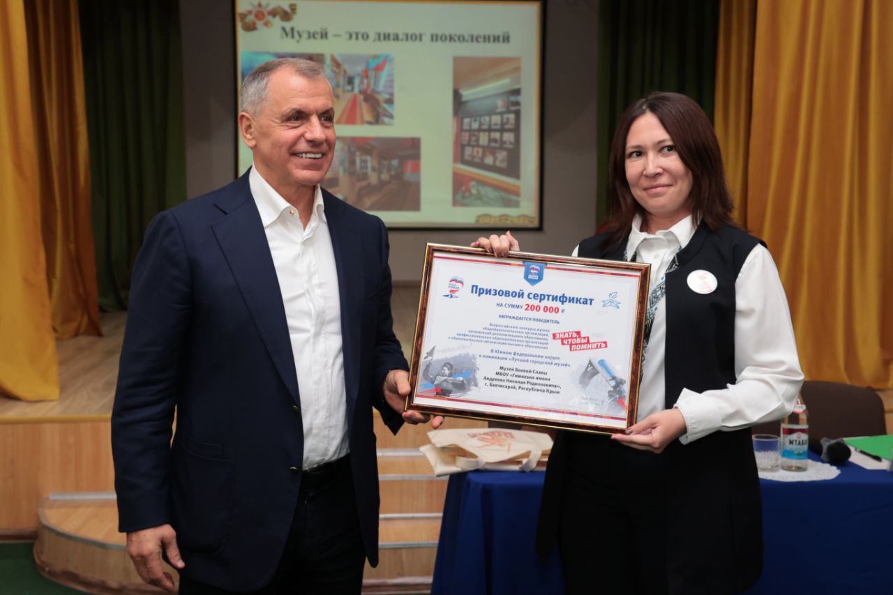 Финалистам конкурса присуждены премии в размере 200 тысяч рублей каждая на улучшение материально-технической базы. В рамках рабочей поездки в Бахчисарайский район вручил сертификат руководству гимназии имени Героя Советского Союза Николая Родионовича Андреева. На эти средства здесь планируется создать экспозицию, посвященную СВО.
