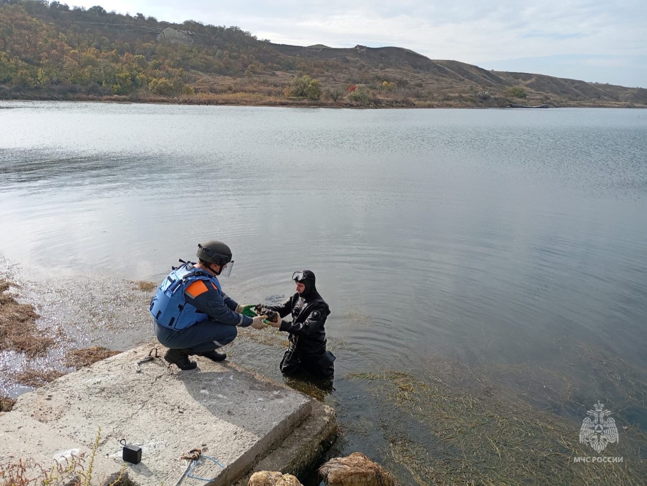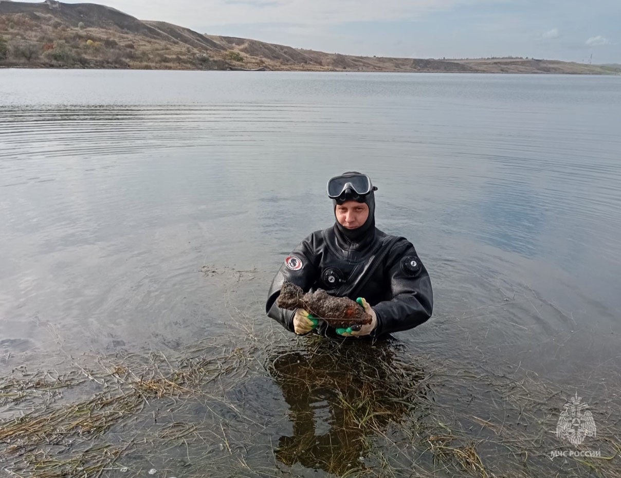 Пиротехники МЧС России уничтожили минометную мину и ручную гранату на глубине около 2 метров.