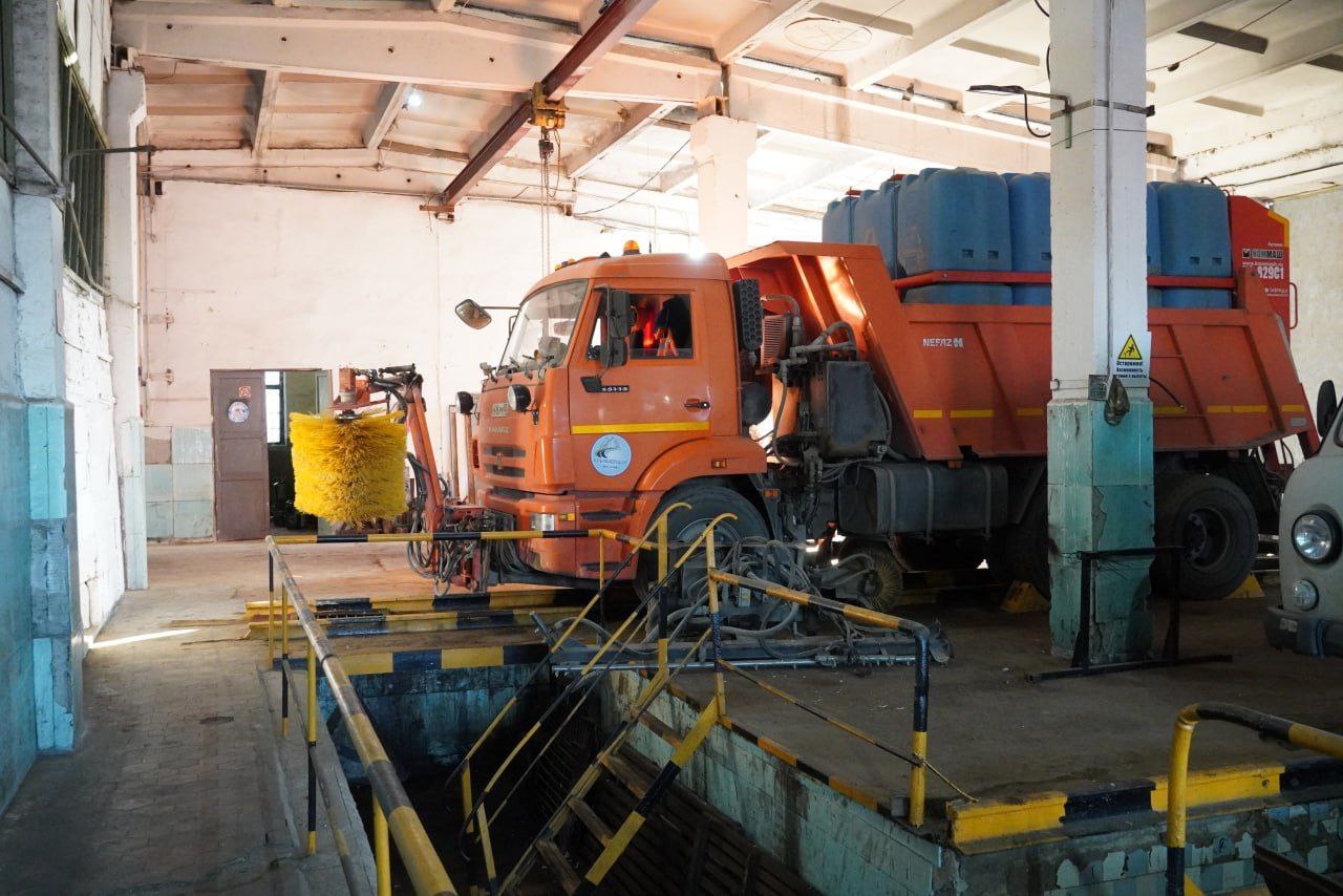 Олег Каторгин проинспектировал автопарк предприятия. Ежедневно на улицы города выходит 15 единиц специализированной техники: вакуумные машины, комбинированные дорожные машины - универсальные транспортные средства, которые путём смены рабочего оборудования могут выполнять различные работы по содержанию дорог и другие.