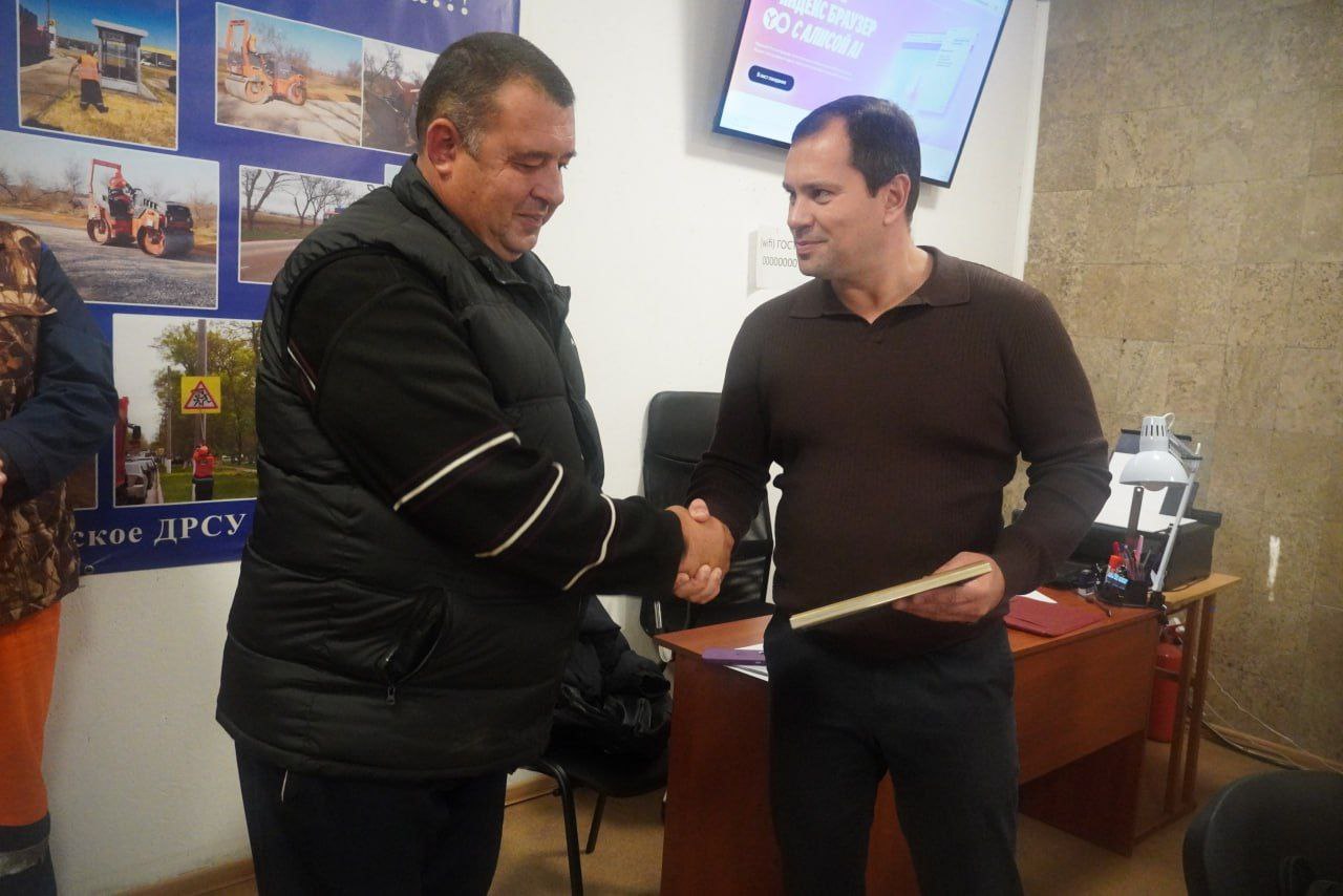 В рамках визита глава администрации встретился с коллективом, поздравил сотрудников с прошедшим Днем работника дорожного хозяйства, вручил городские награды.