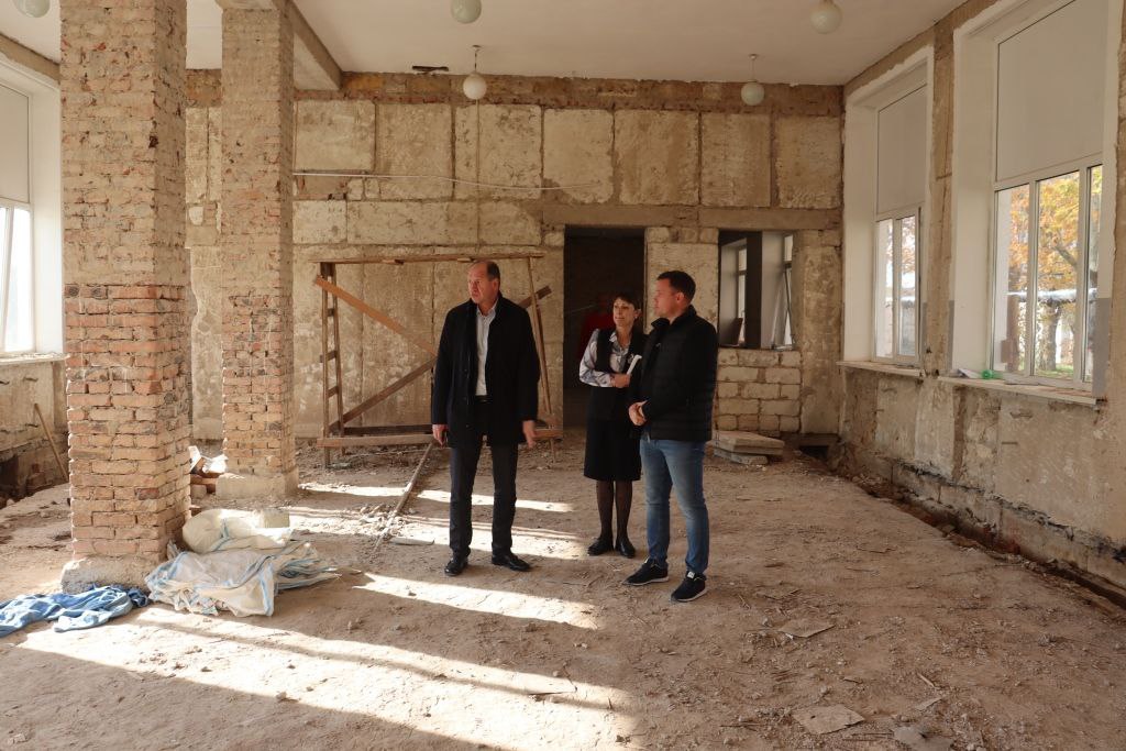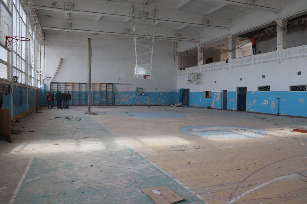 1Начат долгожданный капитальный ремонт спортзала во Фрунзенской школе, на момент посещения на объекте трудилось 6 человек, сейчас и до 5 декабря основные работы- демонтажные. В этом году за счет средств местного бюджета выполнен текущий ремонт санузлов, монтаж системы экстренного оповещения при ЧС, установка ограждения внутри перехода.