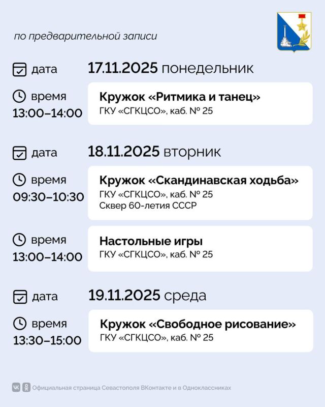 Традиционно публикуем расписание кружков для старшего поколения.