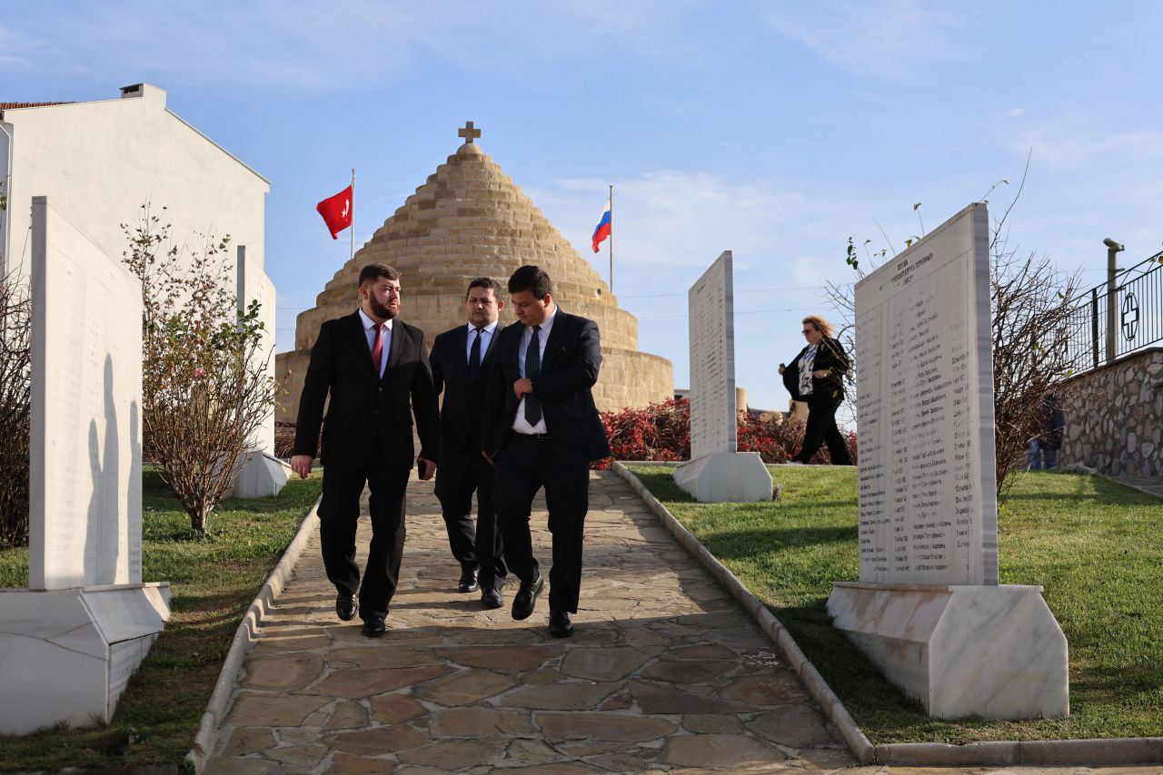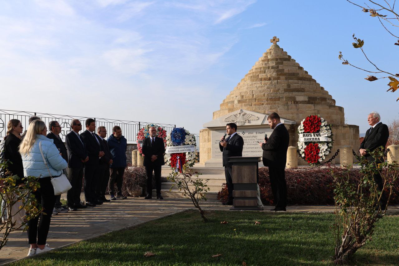 По окончании приветственных речей участники возложили цветы к монументу и русским захоронениям в городе и сделали записи в памятной книге мемориального комплекса.