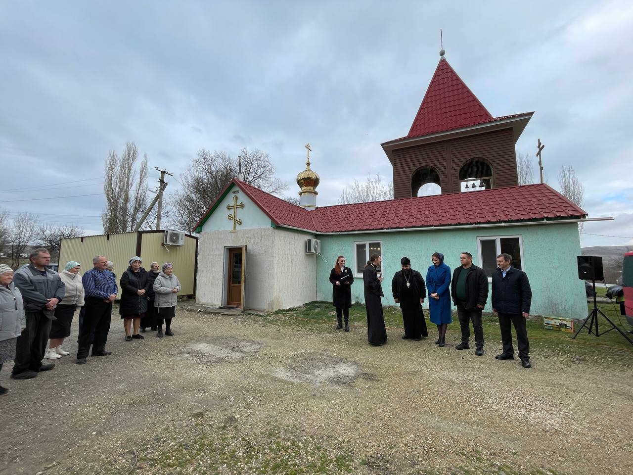 Благочинный Белогорского церковного округа протоиерей Георгий Барзул и настоятель храма иерей Александр Кравченко провели молебен в селе Вишенное, посвящённый обновлённой колокольне.
