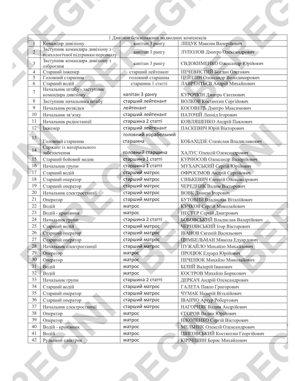 Также мы публикуем весь список личного состава первого дивизиона безэкипажных надводных комплексов воинской части А4770, ещё несколько человек из которого мы установили и выложили на сайте.