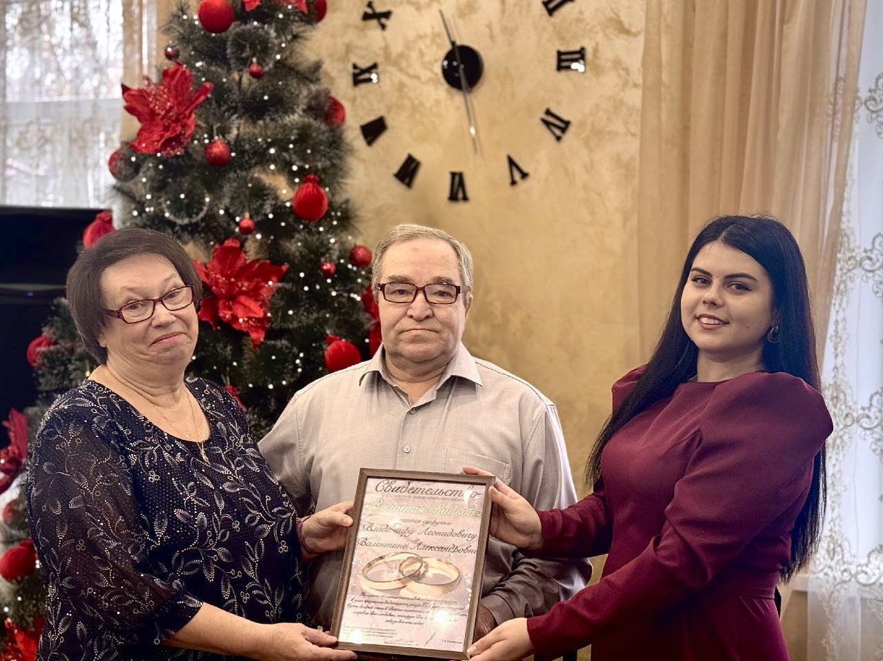 В канун Нового года 2026 года юбилярам был вручен символический подарок – копилка в виде золотой лошади. Этот подарок стал напоминанием о том, как бережно Владимир Леонидович и Валентина Александровна «копили» свою любовь, заботу и верность на протяжении всей совместной жизни, и как они продолжат приумножать эти ценности в будущем.