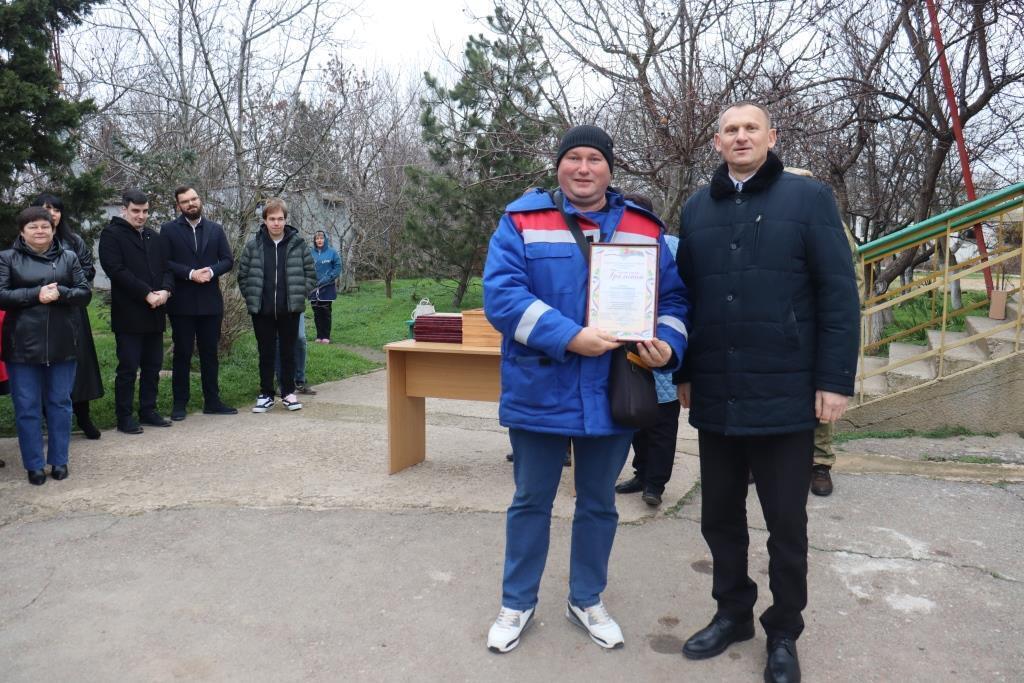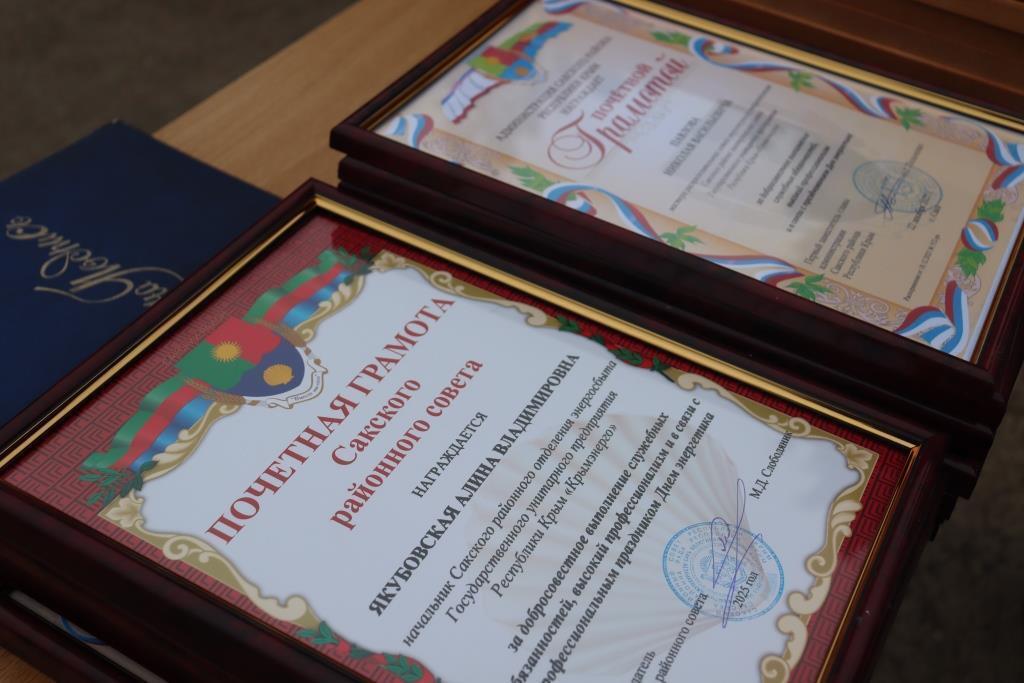Председатель Сакского районного совета Михаил Слободяник, его заместитель Надежда Блохина и первый заместитель главы администрации Сакского района Андрей Польченко поздравили руководителей и сотрудников филиала Сакского РЭС ГУП РК “Крымэнерго” и РОЭ.