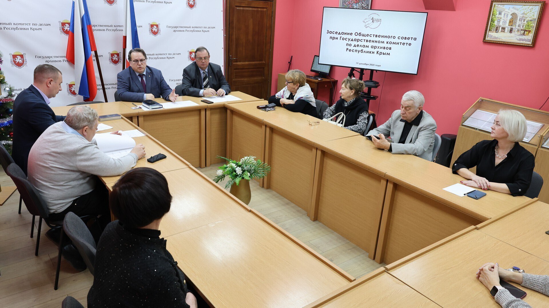 В ходе заседания обновленного состава Общественного совета был заслушан доклад о проделанной работе в 2025 году и утвержден план на 2026 год. Председатель Общественного совета Сергей Юрченко предложил архивистам принять участие в следующем году в соискании Государственной премии Республики Крым. Профессор кафедры истории России исторического факультета Института «Таврическая академия» Крымского федерального университета им. В.И. Вернадского, член Общественной палаты Республики Крым, доктор исторических наук Андрей Ишин внес в проект плана работы предложение организовать информационные и выставочные мероприятия, посвященные 85-летию начала Великой Отечественной войны и 170-летию завершения Крымской войны. Члены совета одобрили данное предложение и утвердили план работы на 2026 год.