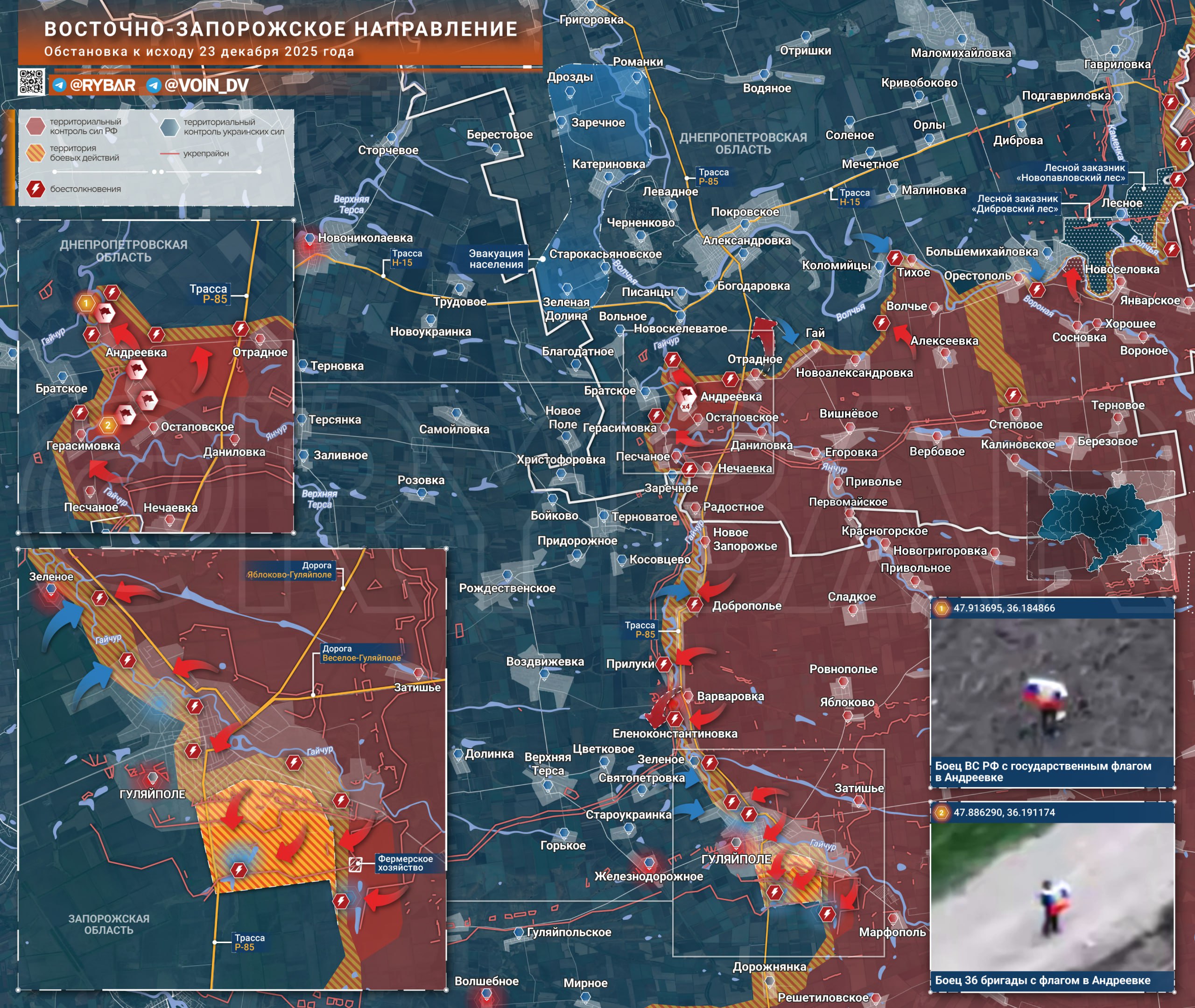 На Восточно-Запорожском направлении воины-дальневосточники освободили Андреевку на северном фланге, а на южном идут бои в центре Гуляйполя и в окрестностях Дорожнянки.