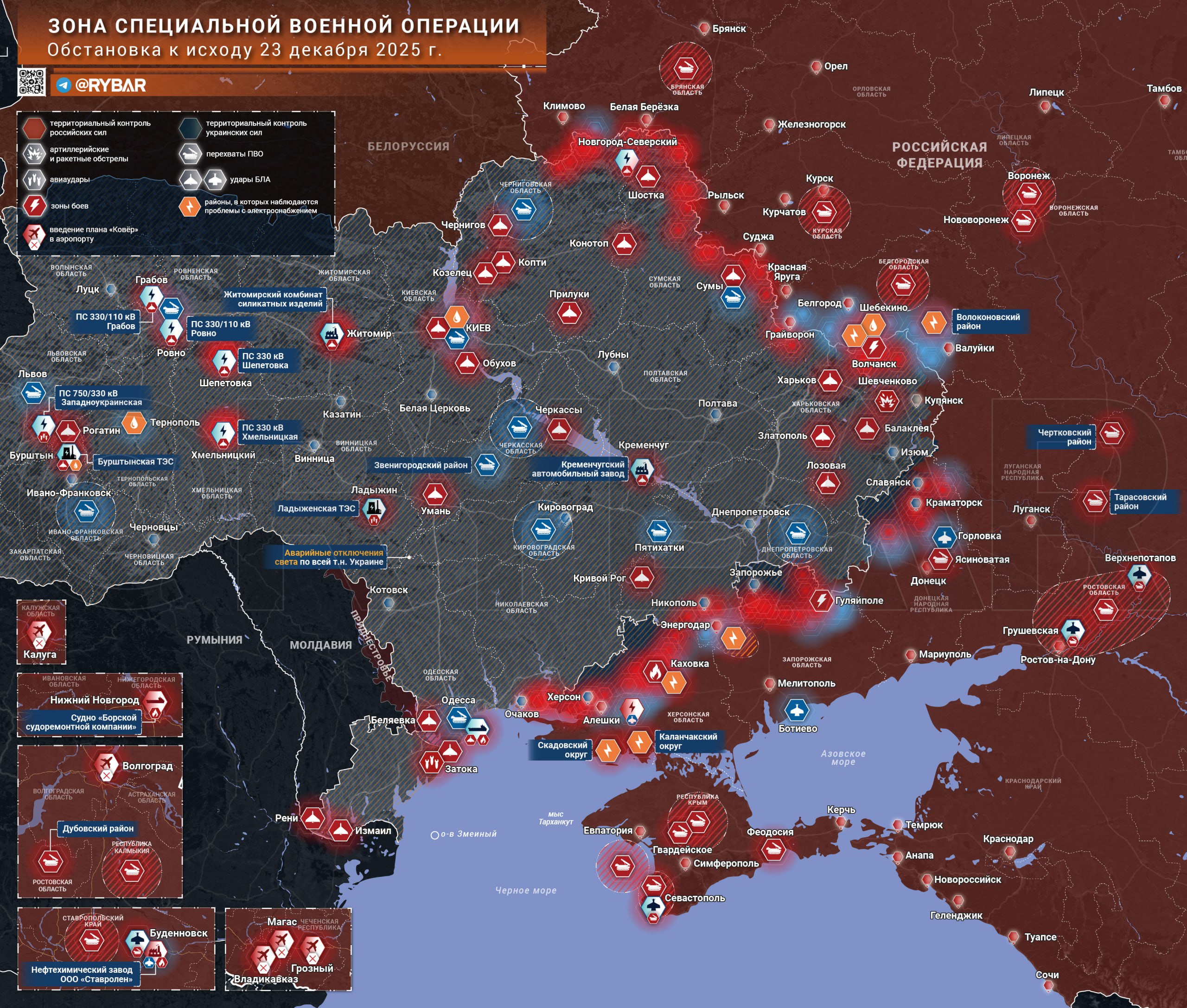 Российские войска нанесли массированный удар по объектам энергетики противника в центральных и западных регионах т.н. Украины. В результате прилетов на всей территории страны фиксировались аварийные отключения света.