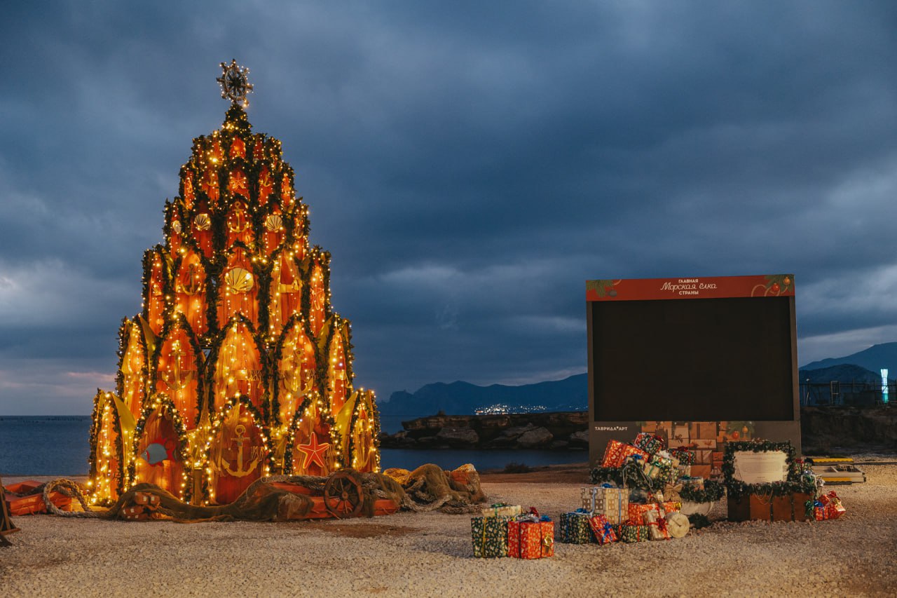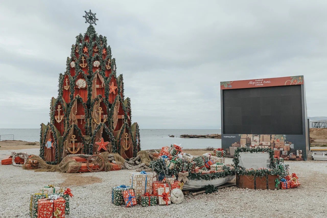 В Судаке на набережной Вдохновения установили восьмиметровую Морскую ёлку. Необычный арт-объект собран из старинных лодок и декоративных якорей и станет одной из главных точек притяжения для гостей «Главной морской ёлки страны» – семейного события, организованного арт-кластером «Таврида».