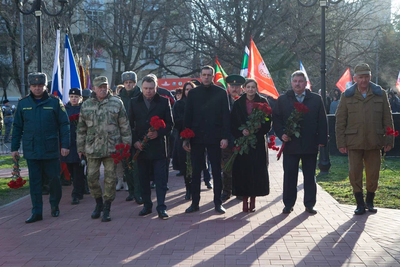 Первый заместитель Председателя Государственного Совета Республики Крым Андрей Козырев, заместитель Председателя Совета министров Республики Крым Игорь Михайличенко, депутат ГС РК, председатель Объединённого крымского Союза ветеранов Афганистана Сергей Тарасов, ветераны боевых действий, представители органов власти и правоохранительных органов, администрации Симферополя и общественных организаций возложили цветы к мемориалу «Крымчанам, погибшим в Афганистане».