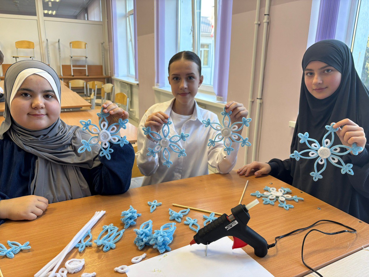 ОбучающиесяМБОУ «Почтовская средняя общеобразовательная школа» Бахчисарайского районапроявили творческий подход к оформлению школы. Под руководством педагогов учащиеся изготовили тематические украшения для создания праздничной атмосферы в помещениях.