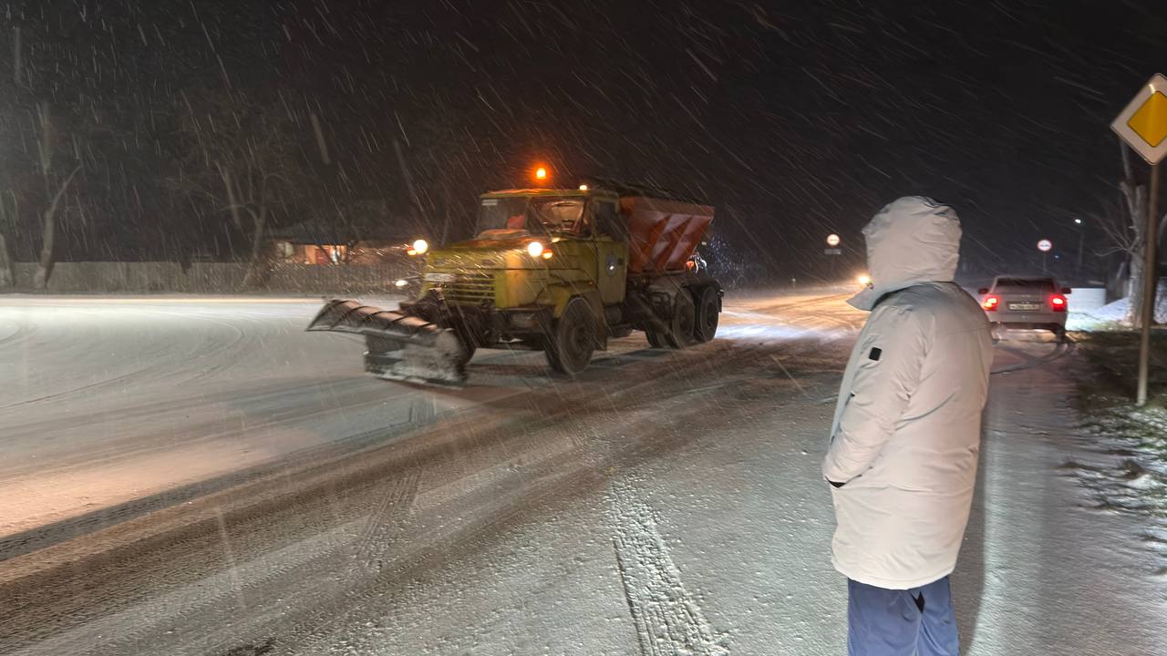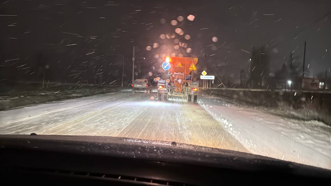 Мониторю ситуацию на дорогах. В Нижнегорском районе сейчас работает 5 единиц спецтехники. При необходимости выйдет 2 трактора с отвалами и грейдер. Заготовлено 332 т. противогололедного материала, 169 т. соли и 1185 т. песка для обработки дорог.