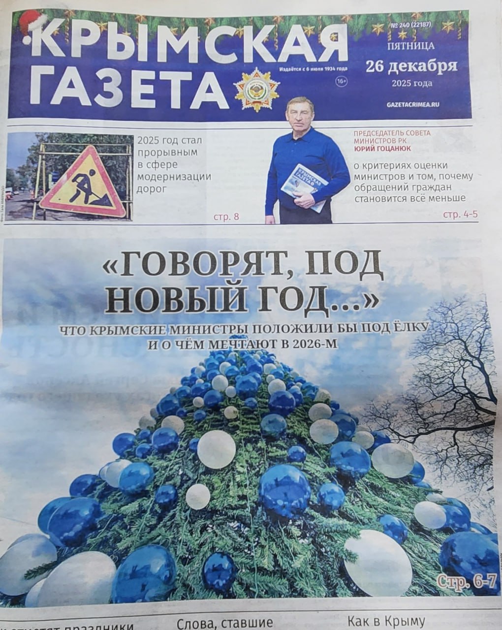 Что крымские министры положили бы под ёлку и о чём мечтают в 2026-м? На эти вопросы отвечали министры Крыма "Крымской газете"